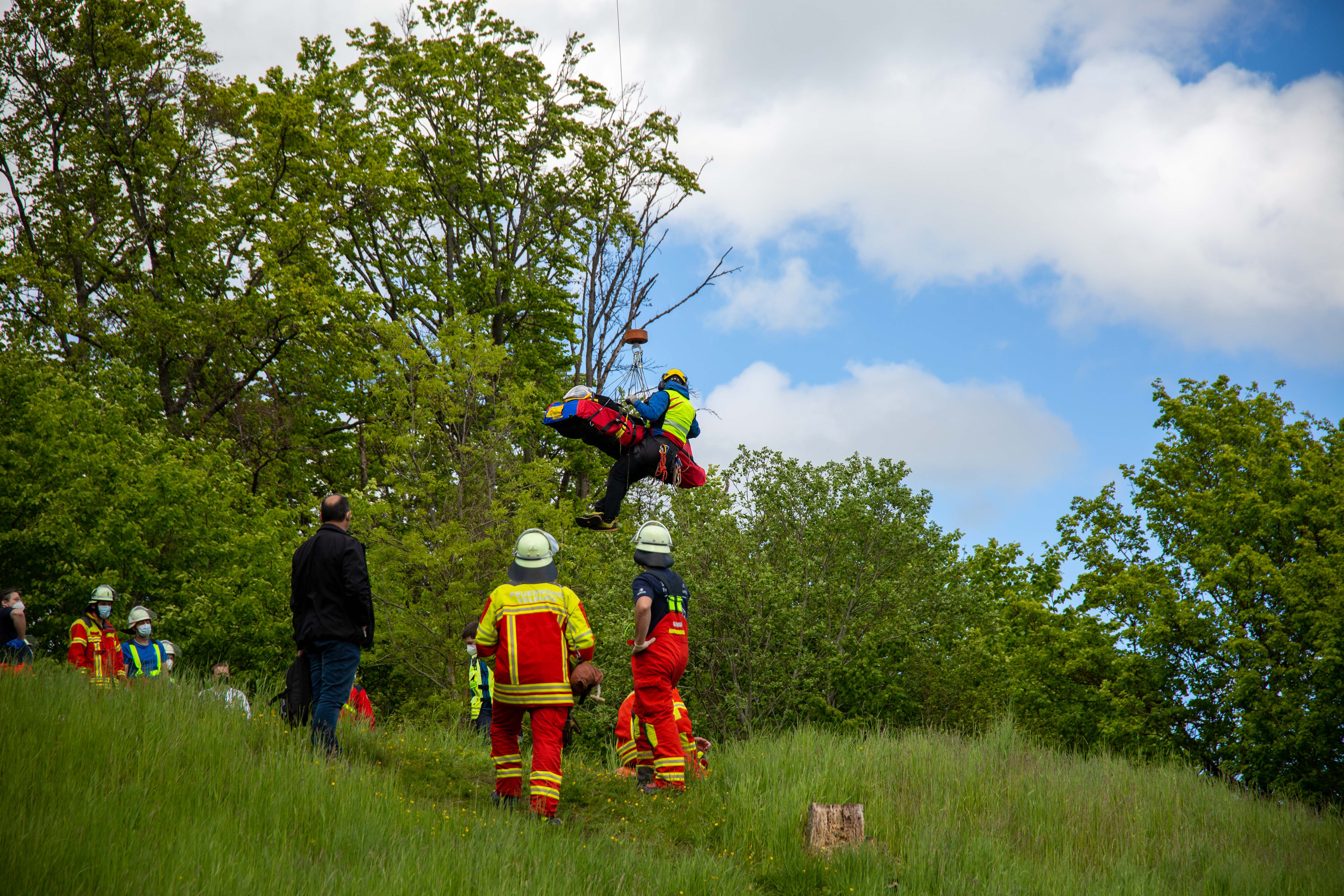 Etliche Einsatzkräfte von Feuerwehr, Rettungsdienst und Polizei waren angerückt. Die Rettung der Verunglückten "konnte aufgrund des unwegsamen Geländes nur mit einem Rettungs-Hubschrauber erfolgen", teilte die zuständige Polizeiinspektion aus Parsberg mit. Aus einer Höhe von zirka 50 Metern sei die verletzte Frau von einem speziell ausgebildeten Höhenretter mit Hilfe einer Seilwinde in den Helikopter geholt worden. Im Anschluss sei sie dann auch gleich in ein Krankenhaus gebracht worden.