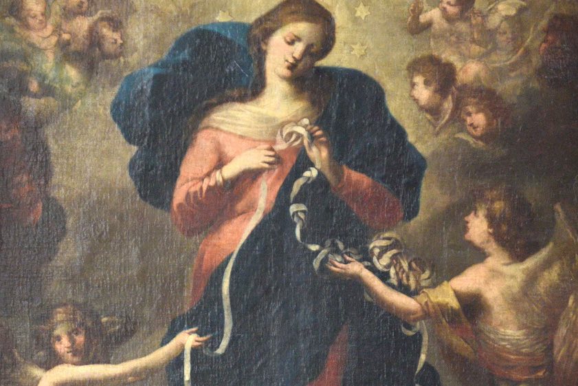 Papst Franziskus bringt diesem Bild seit vielen Jahren eine starke Wertschätzung entgegen. Bereits als Erzbischof von Buenos Aires hatte er die Verehrung der Knotenlöserin in Argentinien verbreitet. Das Gemälde zeigt die Madonna, die die Knoten eines weißen Bandes löst, welches von zwei Engeln gehalten wird. Biblische Szenen, die symbolisch auf Bilder der Hoffnung, der Barmherzigkeit und des Sieges über das Böse verweisen, umrahmen das zentrale Motiv. Eröffnet hatte der Papst den Monat des Gebets um ein Ende der Pandemie mit einem Gebet im Petersdom. Danach war der "Gebets-Marathon" an 30 Marien-Wallfahrtsorten auf der ganzen Welt fortgesetzt worden.
