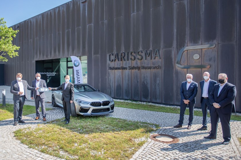 (ty) An der Technischen Hochschule Ingolstadt (THI) hat es am Freitag eine Fahrzeug-Auslieferung der besonderen Art gegeben (Foto oben): Professor Thomas Suchandt, Vizepräsident für Forschung an der THI, und Professor Werner Huber, Leiter des "Carissma Institute of Automated Driving" (C-IAD), nahmen von BMW-Vertretern und des Autohauses Hofmann aus Ingolstadt die Schlüssel für einen BMW-M850i-Competition entgegen. Dieser bietet als spezielles Schulungs- und Forschungs-Auto zusätzliche Schnittstellen, die einen direkten Zugriff auf die zentrale Steuerung des Pkw ermöglichen.