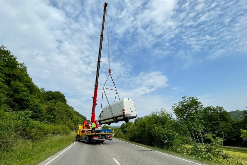 Der junge Mann, der am Steuer saß, hatte laut Mitteilung der Polizei noch Glück im Unglück: Er kam nämlich mit leichten Verletzungen davon. "Die Bergung des Fahrzeugs stellte sich jedoch schwieriger dar, als vorerst gedacht", erklärte ein Polizei-Sprecher. "Ein Abschleppdienst, der auf Kraftfahrzeuge in dieser Größe spezialisiert ist, musste mit der Bergung betraut werden."
