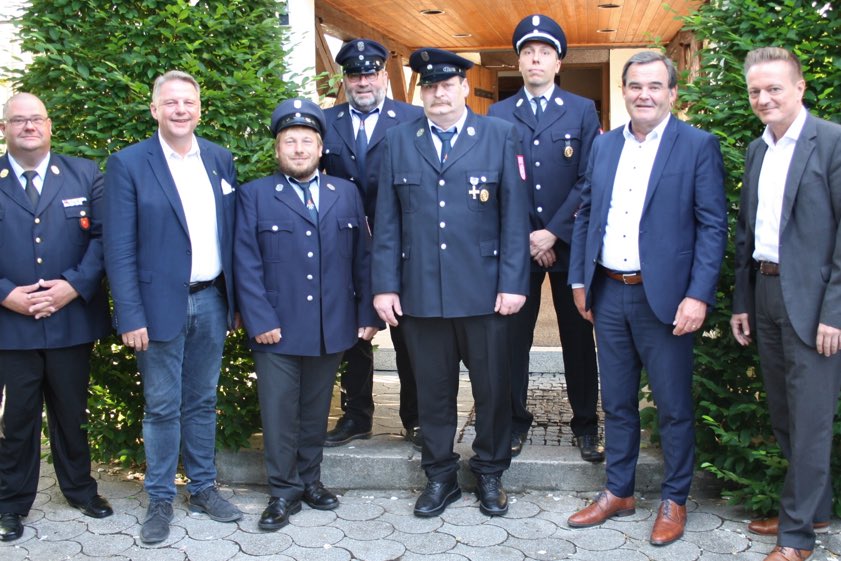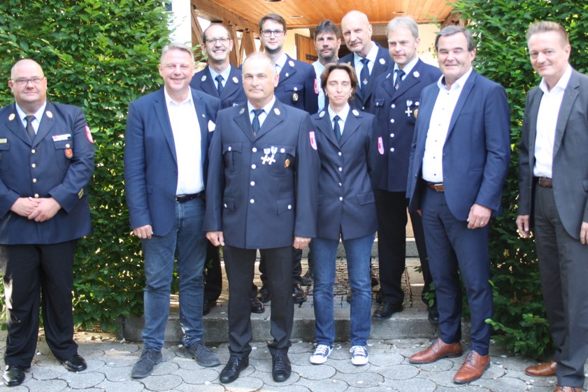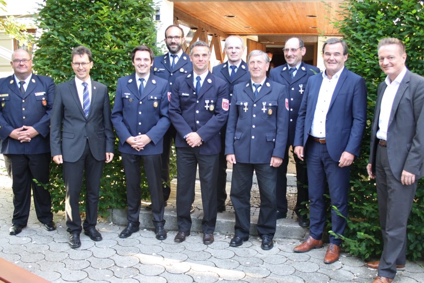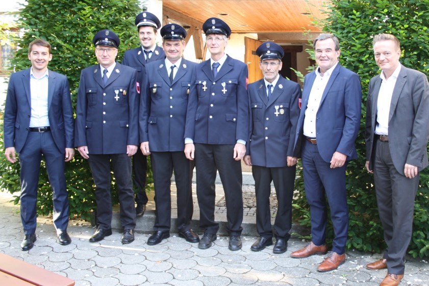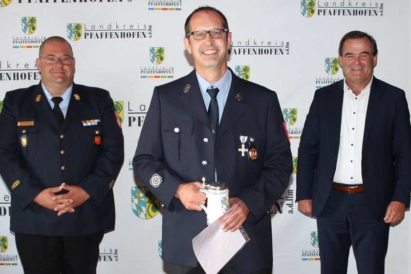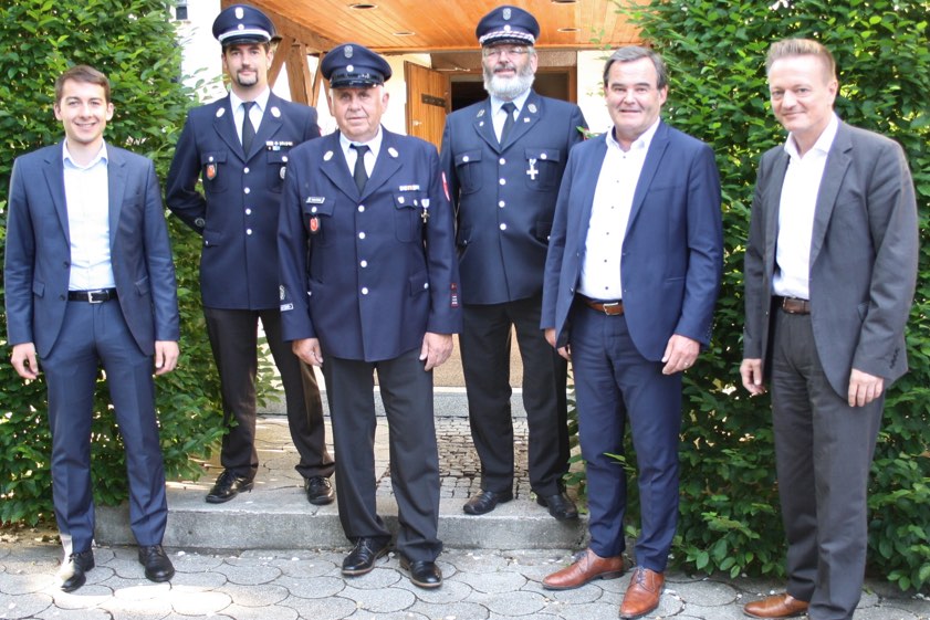 "Ich freue mich sehr, dass ich Sie heute ehren darf", so der Landrat an die Adresse der Feuerwehrleute. "Sie sind seit vielen Jahren ehrenamtlich bei unseren Feuerwehren im Landkreis aktiv und damit eine große Stütze im Rettungswesen und in unserer Gesellschaft." Ihr freiwilliger Einsatz und die Bereitschaft, gesellschaftliche Verantwortung zu übernehmen, sei vorbildlich und sehr lobenswert. "Mit Ihrem Engagement leisten Sie Tag für Tag Großes für Ihre Gemeinde und dafür danken wir Ihnen allen sehr herzlich."