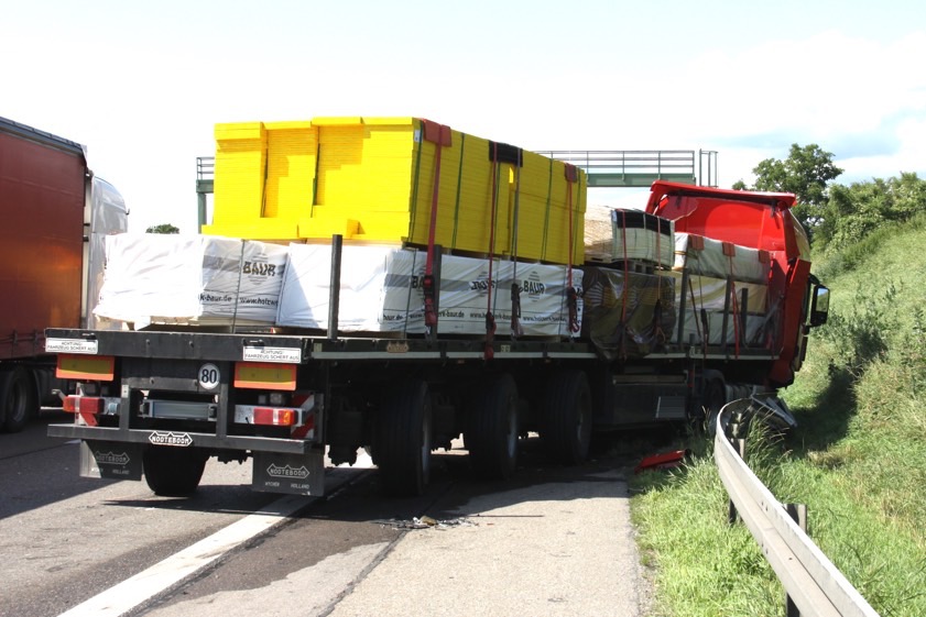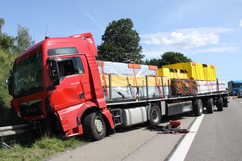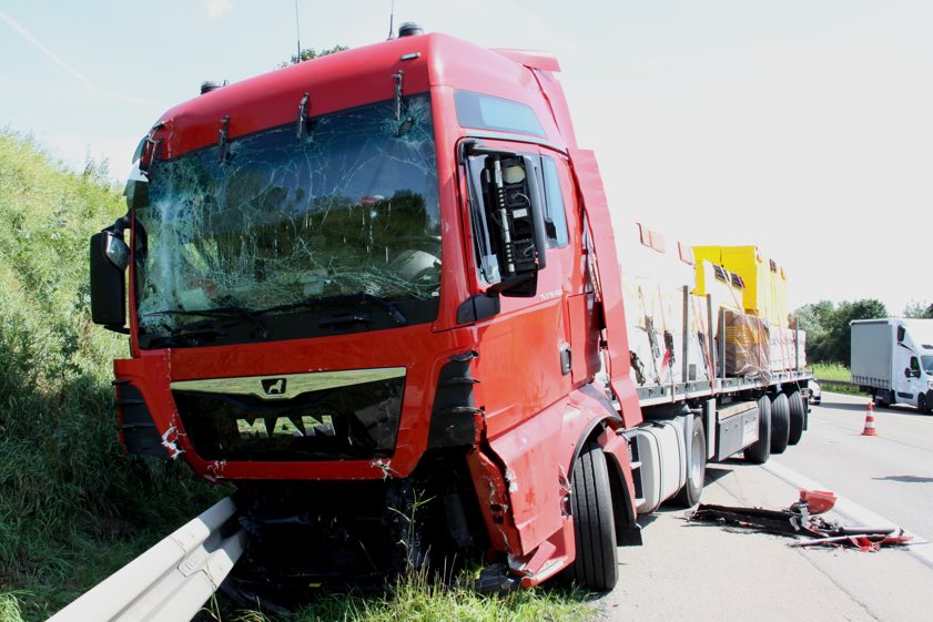 "Obwohl die Unfall-Aufnahme teilweise auf dem Seitenstreifen im Bereich der Absicherung einer Baustelle mit Wegnahme des rechten Fahrstreifens und entsprechender Vorankündigung durch Absicherungs-Fahrzeuge der Autobahn-Meisterei erfolgte", kam es laut Polizei – kurz nachdem alle Beteiligten bereits weitergefahren waren – noch zu kurzen Rückstauungen. Deshalb habe ein 56-Jähriger aus der Ukraine etwa einen Kilometer vor der Anschlussstelle Ingolstadt-Süd seinen Iveco-Sattelzug stark abbremsen müssen. Der ihm auf der rechten Spur nachfolgende 42-Jährige aus Nürnberg habe dies mit seinem MAN-Sattelzug offenbar zu spät erkannt: Er habe abgebremst und sei dem anderen Sattelzug, der noch mit etwa 25 Kilometern pro Stunde gefahren sei, ins Heck geprallt.