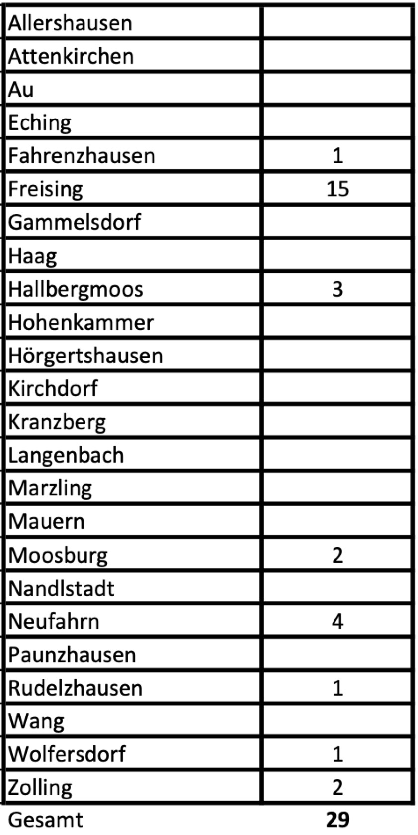 Aktive Corona-Fälle im Kreis Freising nach Gemeinden: