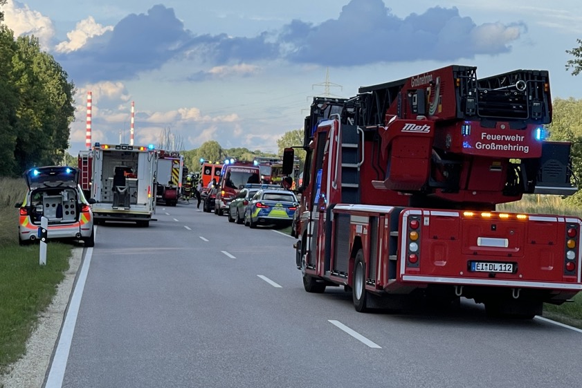 (ty) Zwischen Großmehring und Vohburg-Irsching hat sich am gestrigen Abend gegen 19.10 Uhr ein heftiger Verkehrsunfall zwischen zwei Autos im Gegenverkehr ereignet, bei dem insgesamt sechs Personen schwere Verletzungen erlitten haben – darunter vier Kinder im Alter zwischen acht und 13 Jahren. Zahlreiche Einsatzkräfte sowie zwei Rettungs-Hubschrauber waren nach diesem Frontal-Zusammenstoß vor Ort; die Kreisstraße EI40 war bis nach Mitternacht komplett gesperrt.