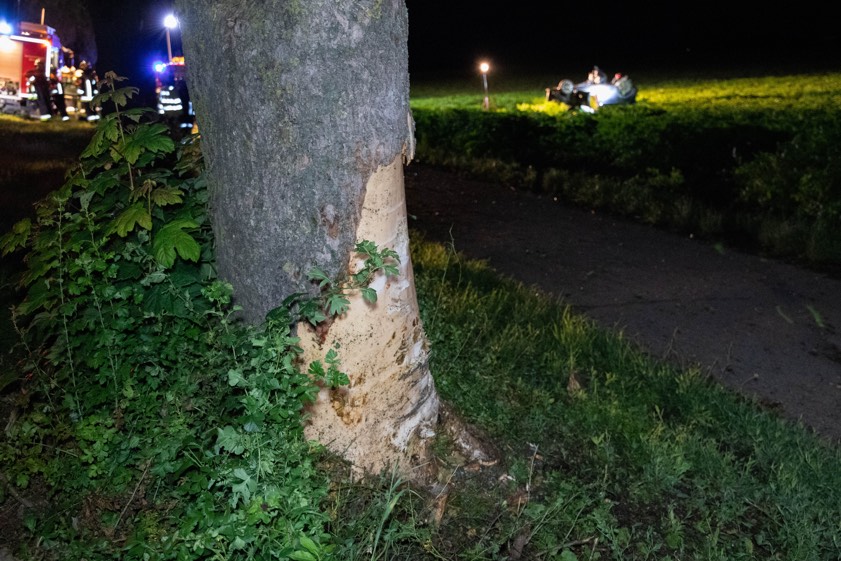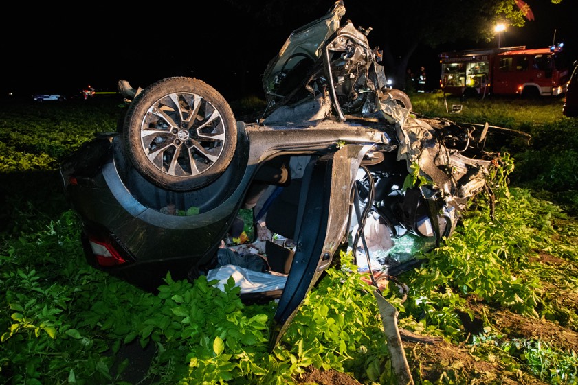 Pkw krachte gegen Baum und blieb total demoliert auf dem Dach liegen. Der Fahrer starb noch am Unglücksort.