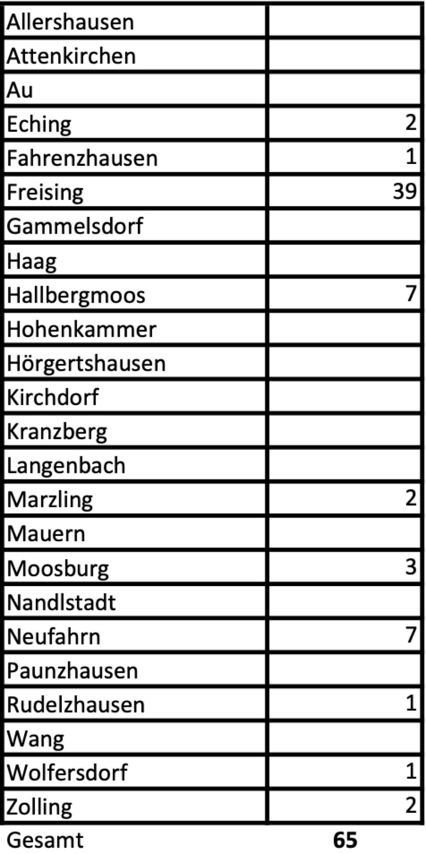 Aktive Corona-Fälle im Kreis Freising nach Gemeinden: