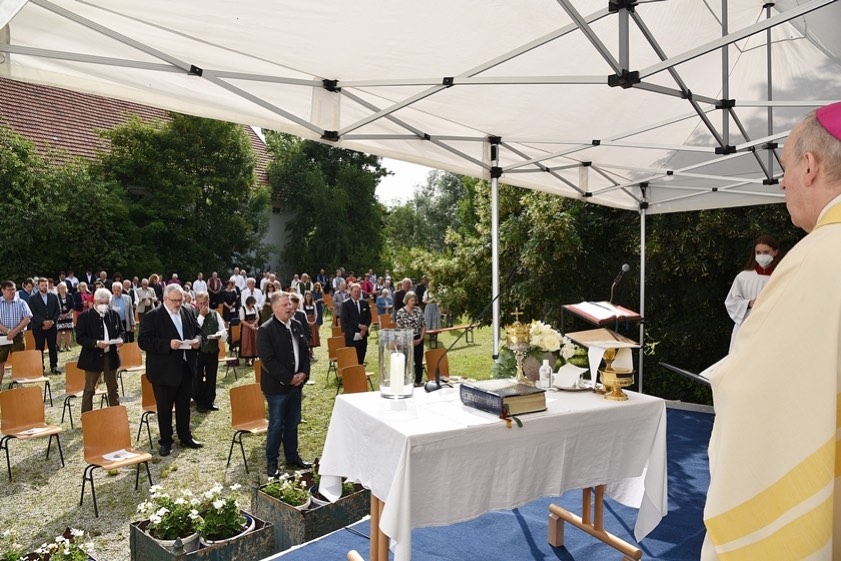 (ty) Gefeiert worden ist am gestrigen Sonntag das 1200-jährige Bestehen des Wolnzacher Ortsteils Niederlauterbach. Ein Höhepunkt des Tages war die feierliche Weihe der Jubiläumskerze durch Weihbischof Reinhard Pappenberger in der Pfarrkirche "St. Emmeram". Direkt im Anschluss wurde ein Gottesdienst unter freiem Himmel im so genannten Karrerhof abgehalten (Foto oben). Unter den Ehrengästen waren auch der Bundestags-Abgeordnete Erich Irlstorfer, der Landtags-Abgeordnete Karl Straub (beide CSU) und der Pfaffenhofener Landrat Albert Gürtner (Freie Wähler). Die Festansprache hielt der Wolnzacher Bürgermeister Jens Machold (CSU), der auch als Schirmherr der Veranstaltung fungierte.