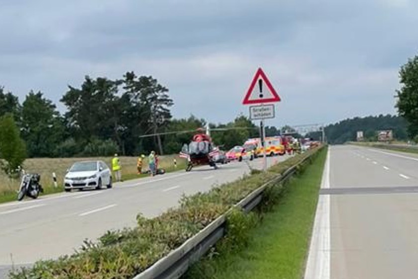(ty) Auf der A93 hat sich am gestrigen Vormittag im Landkreis Kelheim ein Verkehrsunfall ereignet, bei dem zwei Motorrad-Fahrer im Alter von 41 und 29 Jahren jeweils schwere Verletzungen erlitten haben. Das Unglück ereignete sich gegen 10.40 Uhr zwischen Abensberg und Hausen im Gemeinde-Bereich von Hausen, als eine vierköpfige Biker-Gruppe aus dem Landkreis Wunsiedel auf der Autobahn in Richtung Regensburg unterwegs war. Die A93 war in diesem Bereich in Richtung Regensburg bis etwa 16.30 Uhr komplett gesperrt.