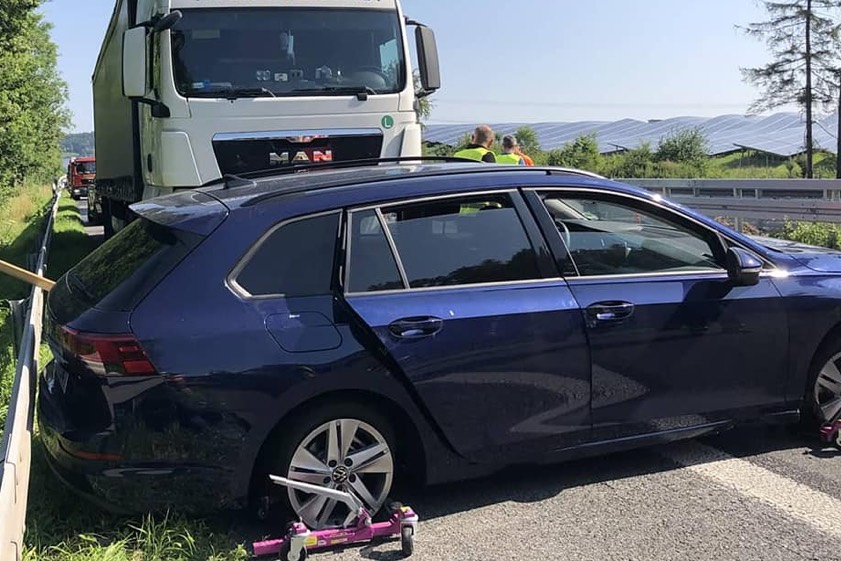 Der Lkw-Fahrer (36) hatte weder das Auto noch die Kollision bemerkt. Golf-Lenkerin (20) hatte viel Glück im Unglück.