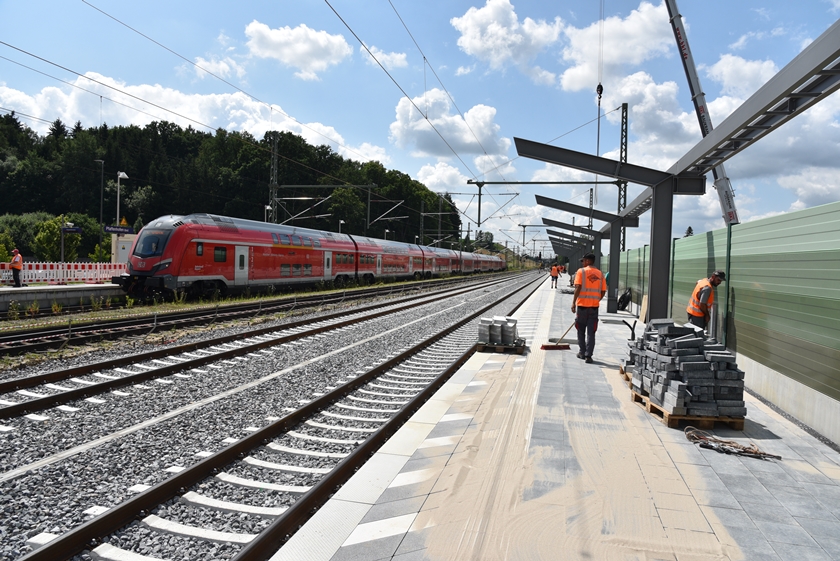 Mit allen Arbeiten befinde man sich im Plan und auch bezüglich der Kosten sei man "extrem stabil", erklärte Thürer bei dem Rundgang mit Medien-Vertretern auf der Baustelle: "Wir sind genau im Programm." Nach der auf 60 Millionen Euro veranschlagten, umfangreichen Modernisierung will die Deutsche-Bahn-AG unter anderem die Hochgeschwindigkeits-Strecke Nürnberg-München für den ICE aufrüsten, sodass dieser voraussichtlich ab dem Jahre 2023 mit bis zu 190 Kilometern pro Stunde unterwegs sein kann. Bis es soweit ist, müssen die Fahrgäste der Bahn allerdings noch mit einigen Veränderungen und Einschränkungen leben.