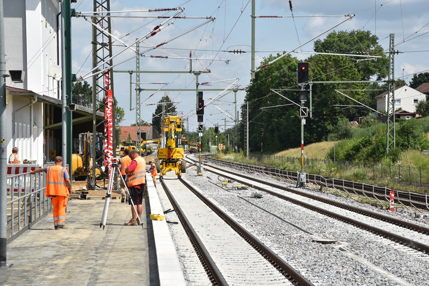 Anschließend werden laut Bahn die ehemaligen Gleise 2 und 3 mit den dazugehörigen Weichen zurückgebaut und in neue Lage gelegt. Auch die Oberleitungs-Anlage werde an die neue Gleislage angepasst, ebenso wie die neuen Signale. Das alte Relais-Stellwerk werde zudem vollständig zurückgebaut. Auch der Bau von Lärmschutzwänden schreite dann weiter voran.