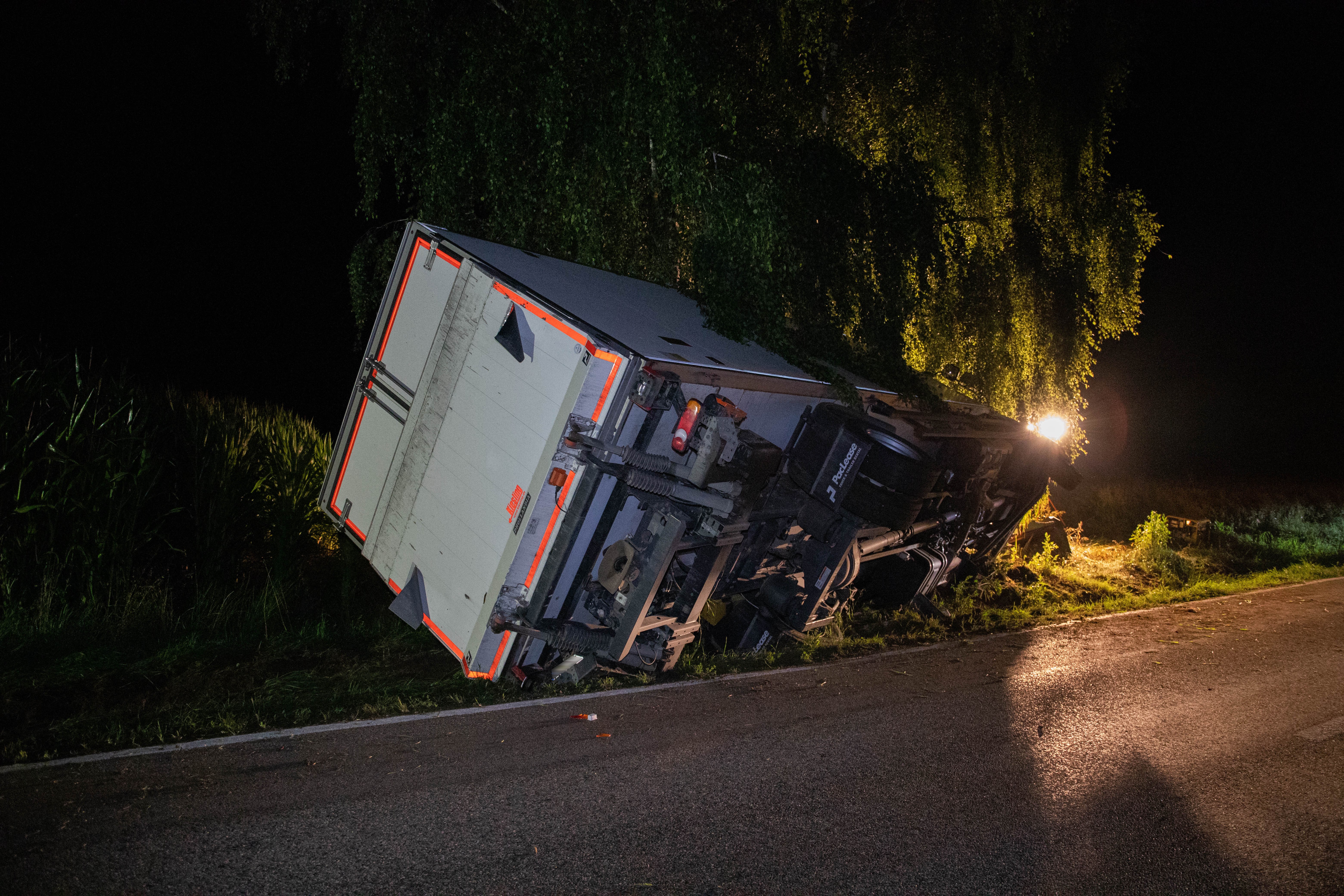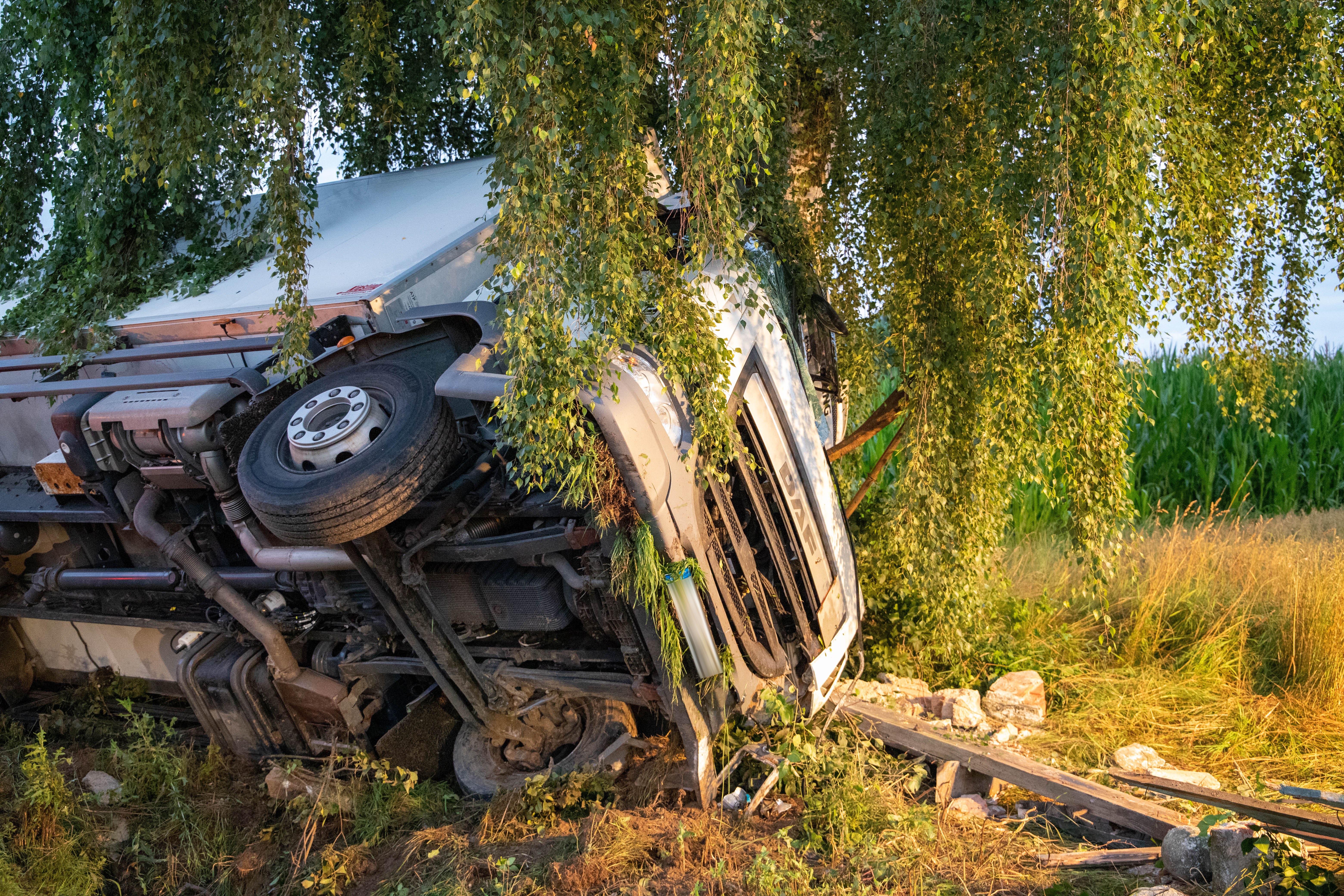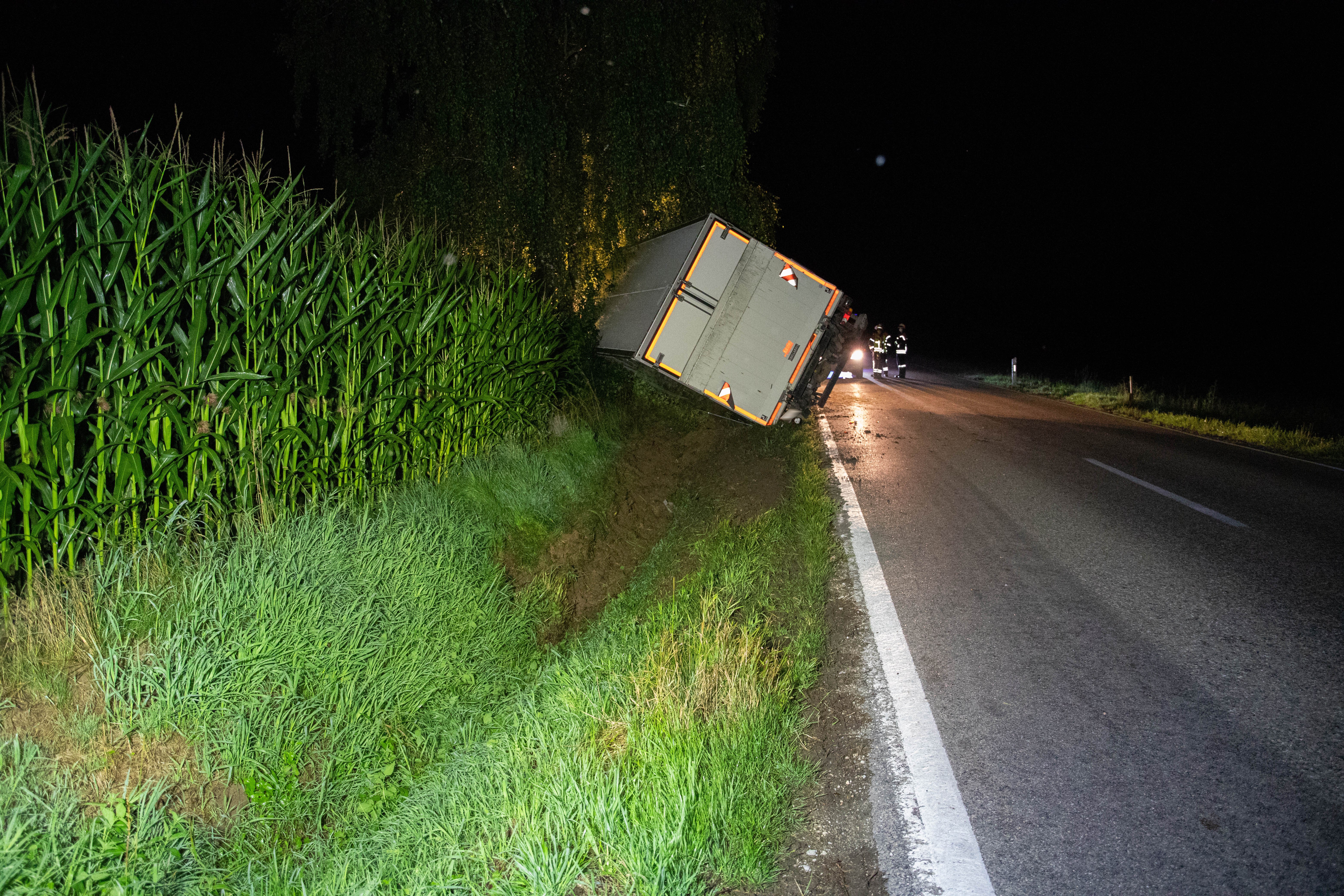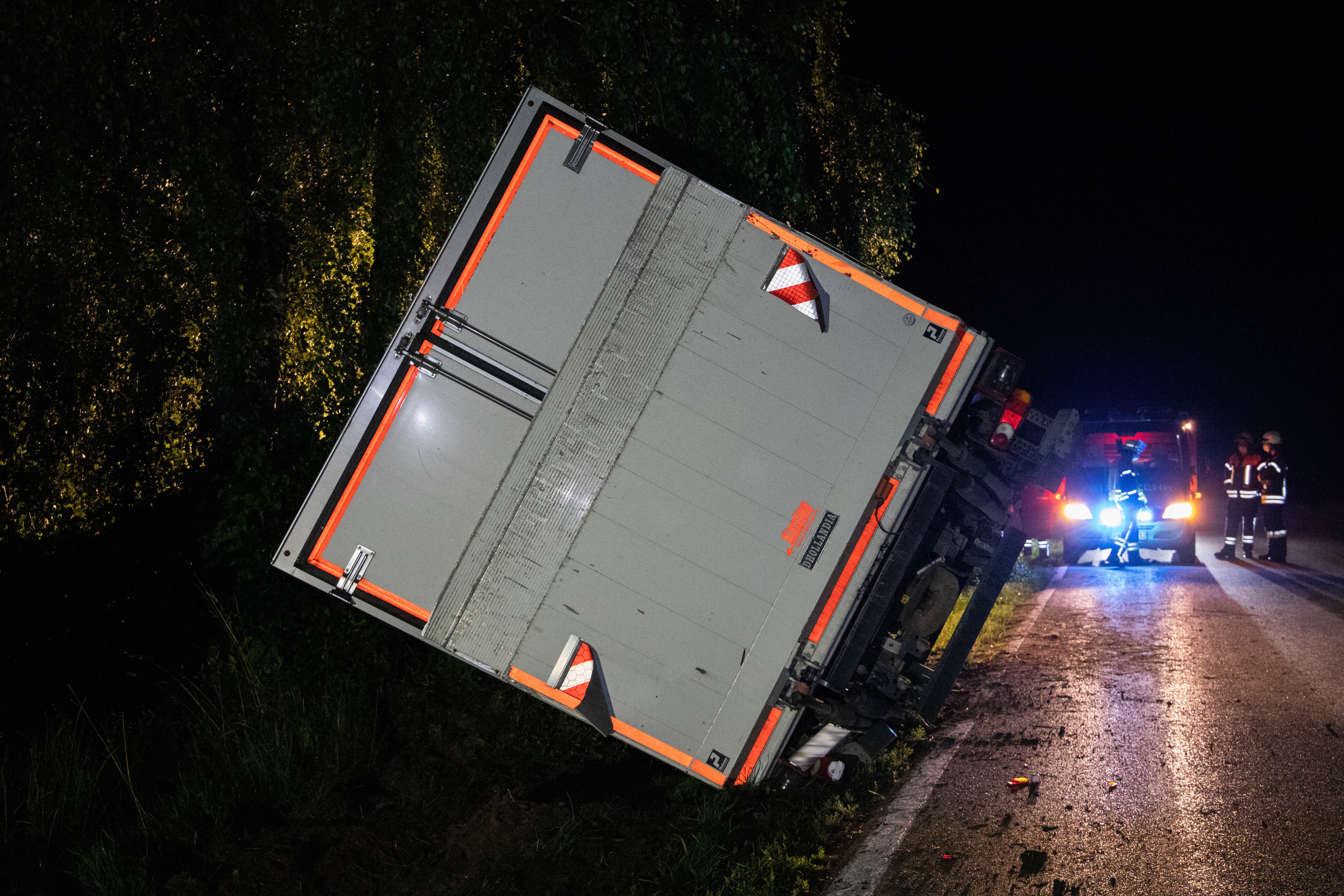 57-Jähriger wollte am heutigen Morgen angeblich einem Tier ausweichen, der 7,5-Tonner kam dabei von der Staatsstraße ab.