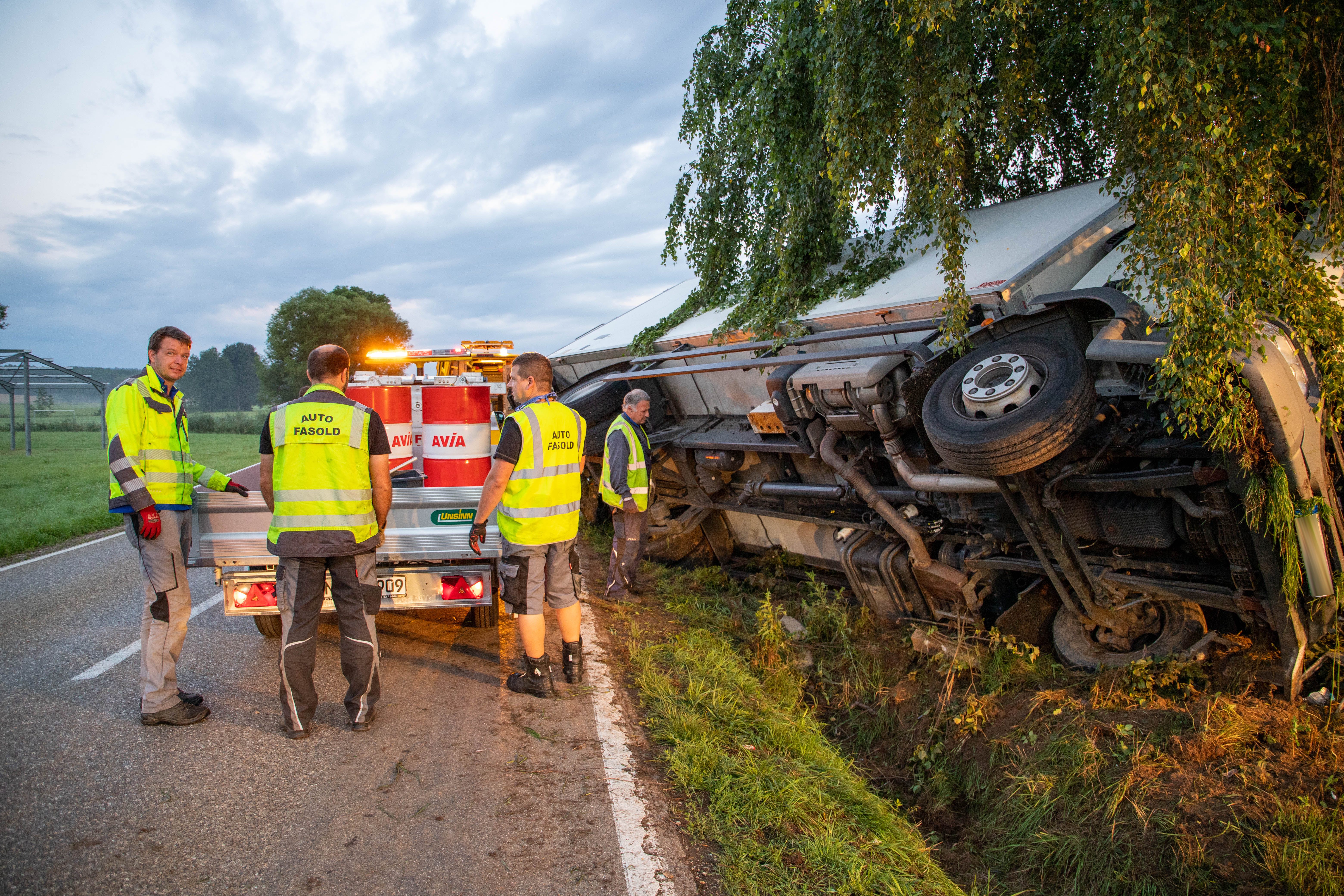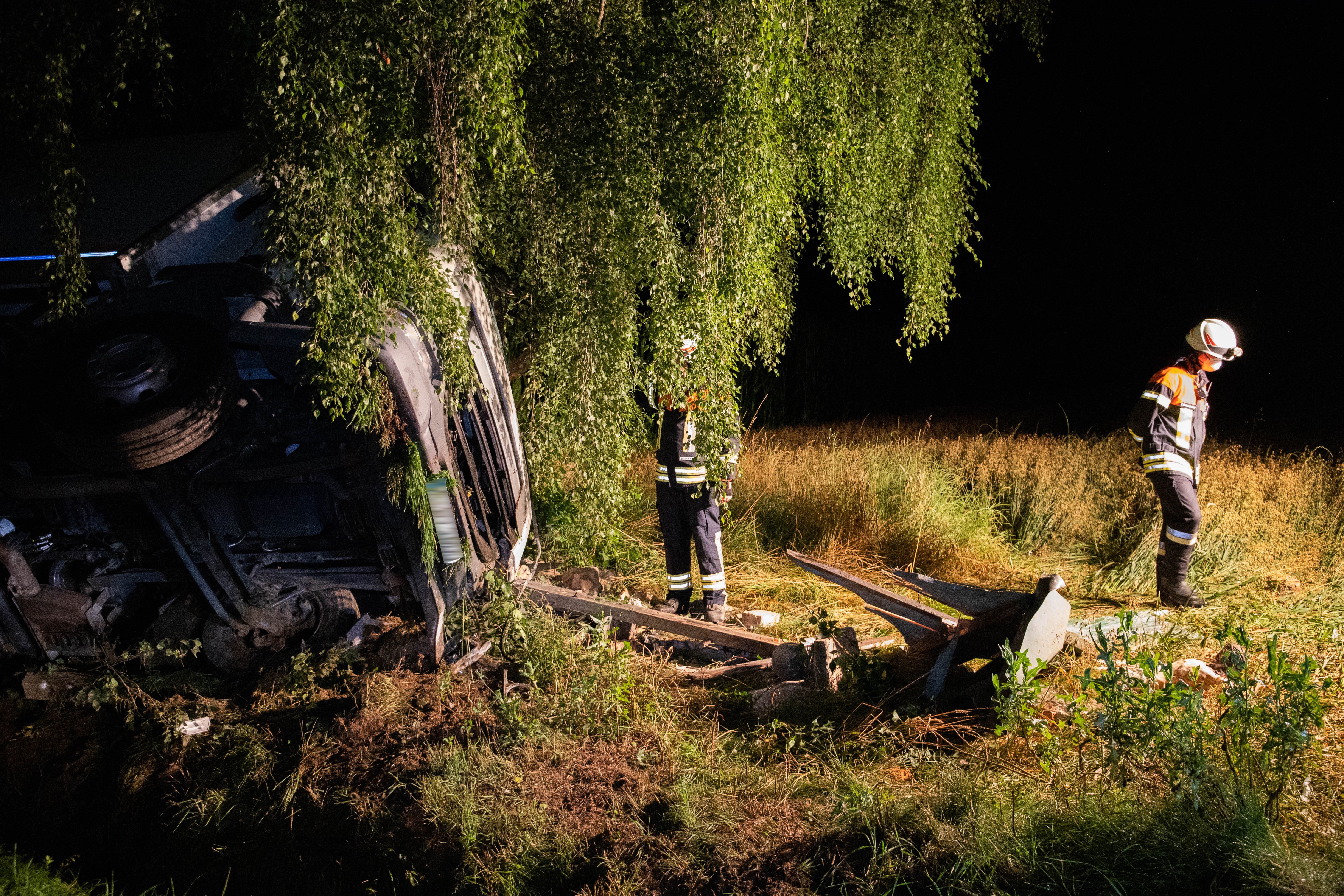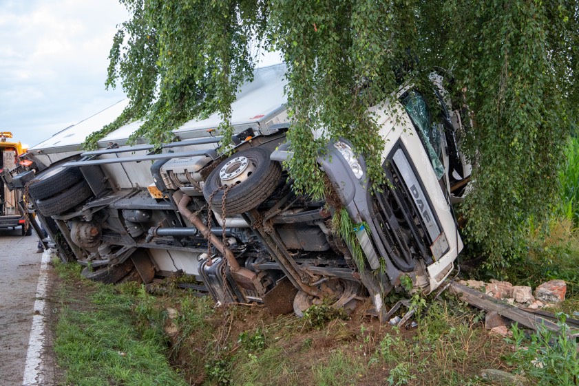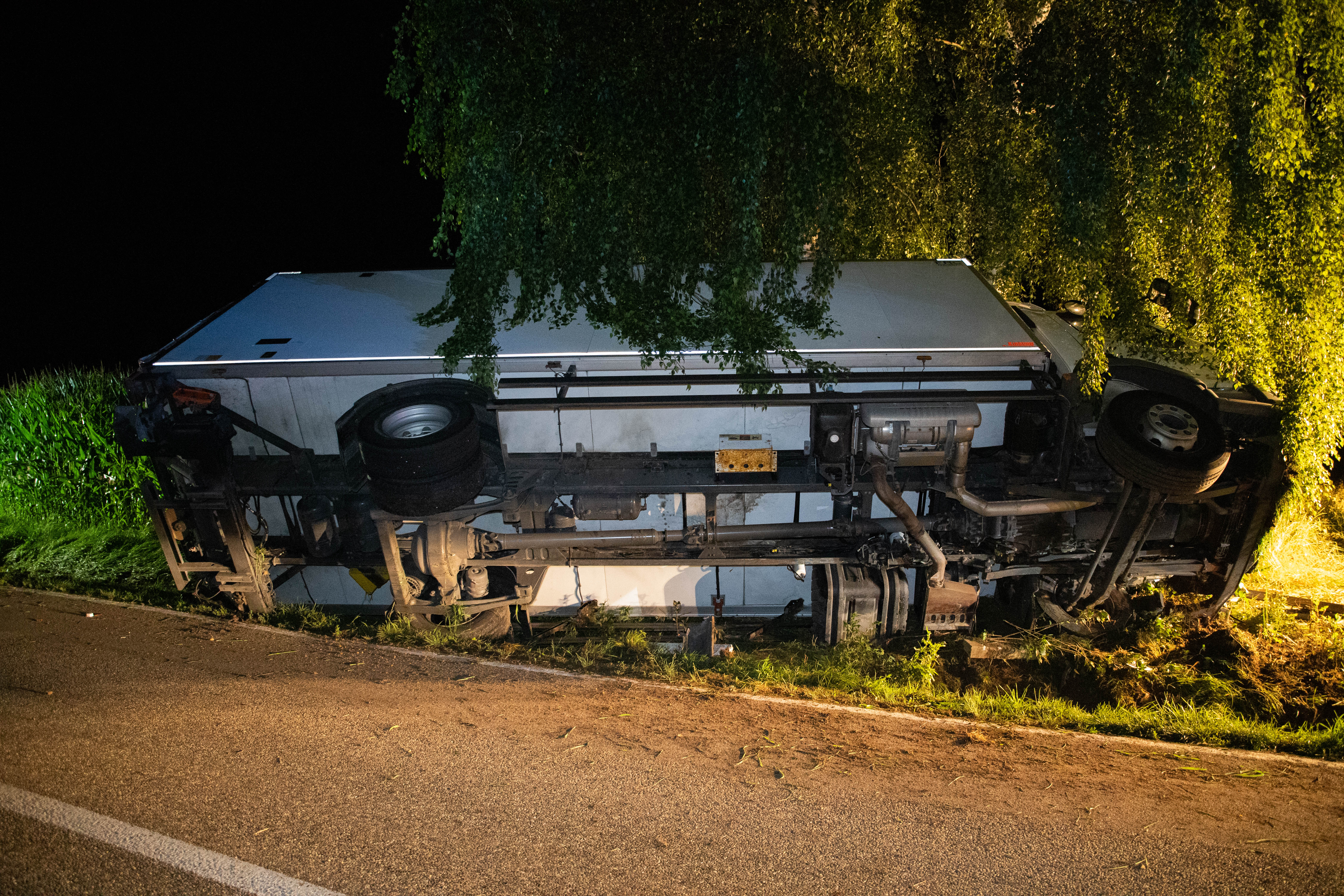 57-Jähriger wollte am heutigen Morgen angeblich einem Tier ausweichen, der 7,5-Tonner kam dabei von der Staatsstraße ab.