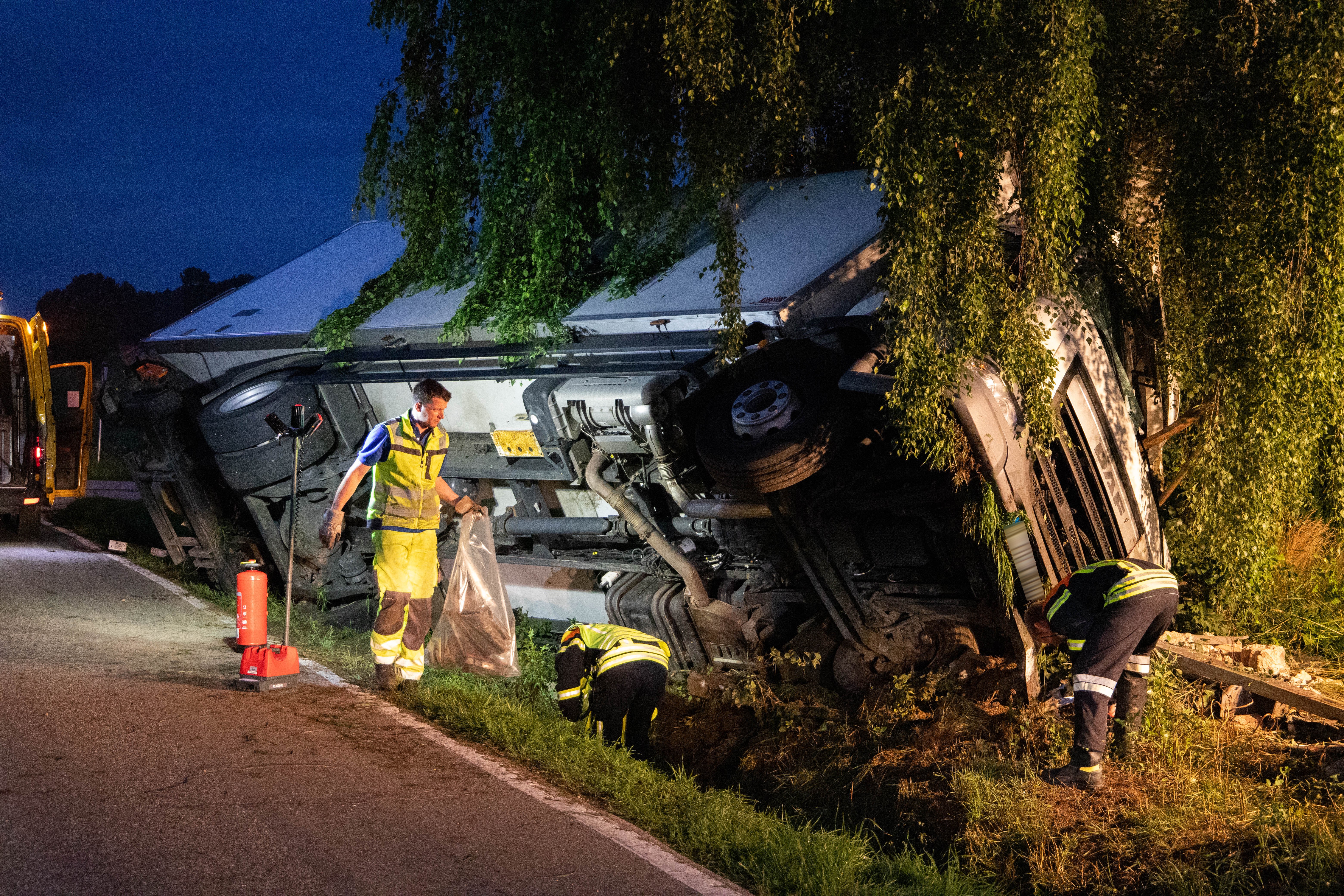 Bei dem Unfall entstand nach Einschätzung der Polizei ein Schaden in Höhe von insgesamt 25 000 Euro. Zur Bergung des Lastwagens waren ein Autokran und ein Bergungs-Lkw erforderlich. Da eine unbekannte Menge an Betriebsstoffen ausgelaufen sei, habe das kontaminierte Erdreich ausgebaggert werden müssen. Wegen der Bergungs-Maßnahmen war die Staatsstraße in diesem Bereich für zirka eine Stunde lang gesperrt. Neben der Polizei und dem Rettungsdienst waren die Feuerwehren aus Gerolsbach und Euernbach im Einsatz.