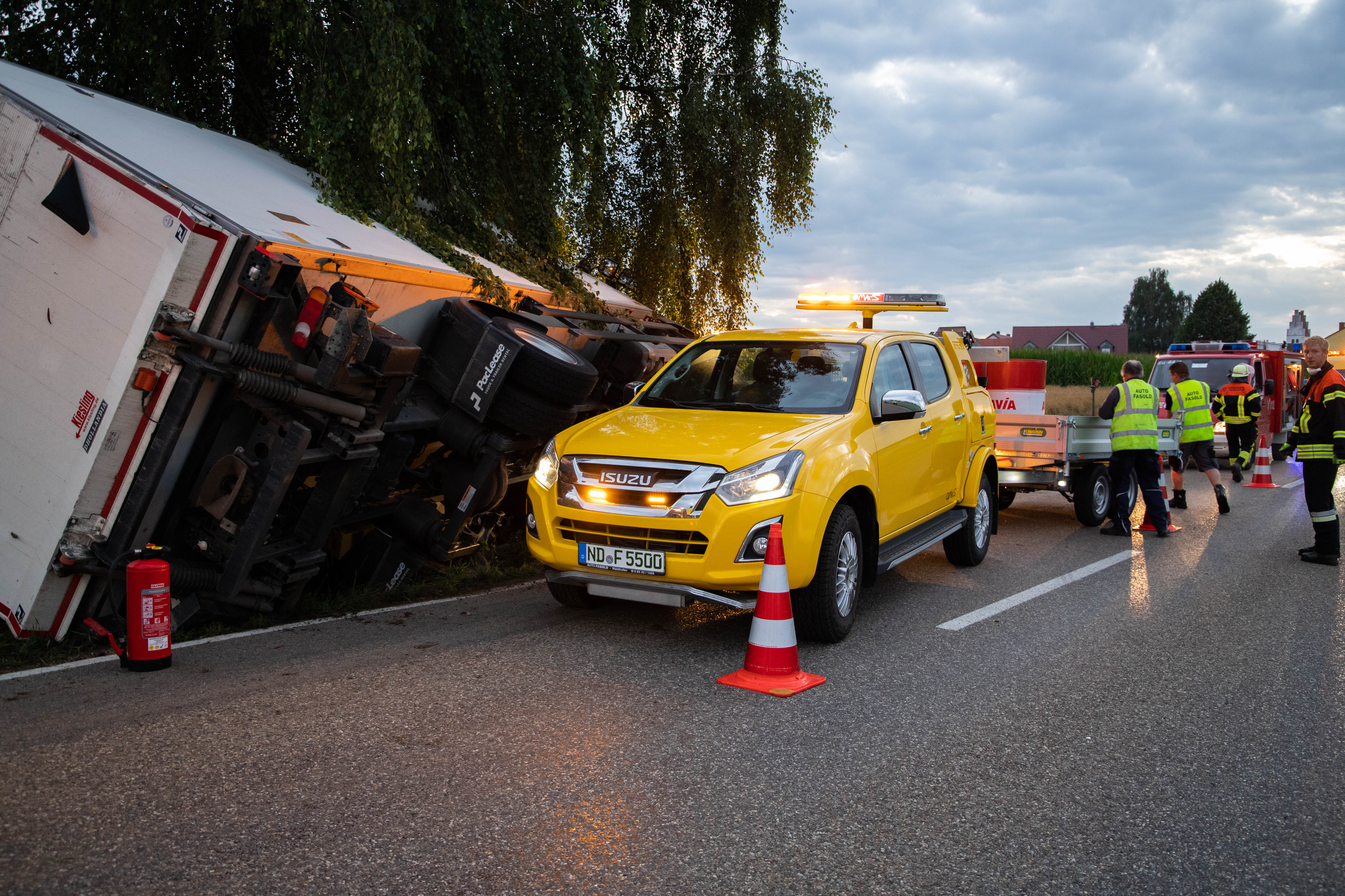 (ty) Ein heftiger Lastwagen-Unfall hat sich am heutigen Morgen im Gemeinde-Bereich von Scheyern ereignet. Ein 57-Jähriger kam zwischen Gerolsbach und Euernbach, angeblich wegen eines Wildtiers, mit seinem Lkw von der Staatsstraße 2084 ab. Der 7,5-Tonner blieb am Ende seitlich liegen. Der Fahrer kam mit leichten Verletzungen davon, wurde in ein Krankenhaus gebracht. Der Sachschaden wurde auf zirka 25 000 Euro beziffert. Die Strecke war im Bereich der Unfallstelle für etwa eine Stunde gesperrt.