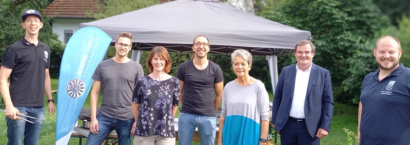 Das Wetter zeigte sich nach einem verregneten Vormittag zum Glück von seiner besten Seite und so konnte das Team der "Round Tabler" aus Ingolstadt am Abend für die ehrenamtlichen "Tafel"-Helfer den Grill aufbauen und sie mit Grillfleisch und Salaten belohnen. "Round Table 96" ist ein noch junger Service-Club aus Ingolstadt. Die Mitglieder engagieren sich ehrenamtlich bei Service-Projekten und sozialen Aktivitäten. Auf dem Foto oben, von links: Uli Schönauer (Round Table), Dominik Farrenkopf (Round Table), Silvia Hiestand (Tafel-Leitung), Florian Wirler (Round Table), Anne Bienlein (Tafel-Leitung), Landrat Albert Gürtner und Ferdinand Maier (Round Table).