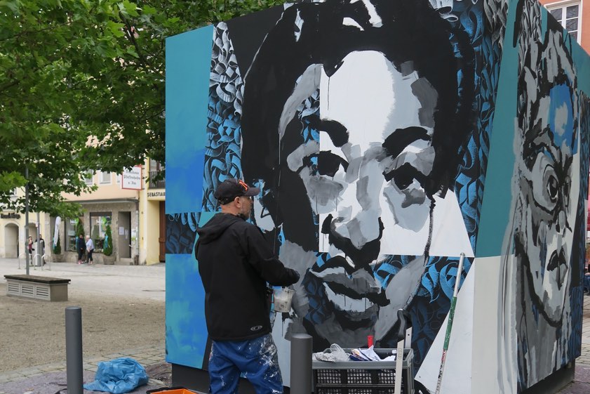 "Krankheitsbedingt kann der Pfaffenhofener Künstler Patrick Hartl, der jeweils gemeinsam mit den eingeladenen Künstlern den Würfel bemalen wollte, an den Umgestaltungen leider nicht teilnehmen", so die Stadtverwaltung. "Um dennoch das ursprüngliche Konzept der Kooperationen aufrecht zu erhalten, lässt Lion Fleischmann Teile des bereits bemalten Würfels stehen und arbeitet seine Ideen in das Objekt ein." Das Projekt "Urban Art trifft Hauptplatz" läuft noch bis 5. September.