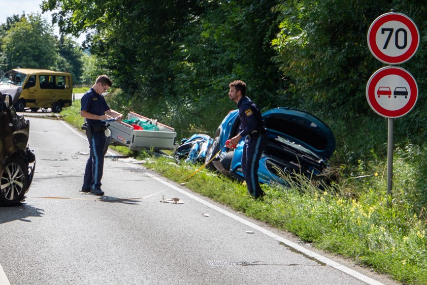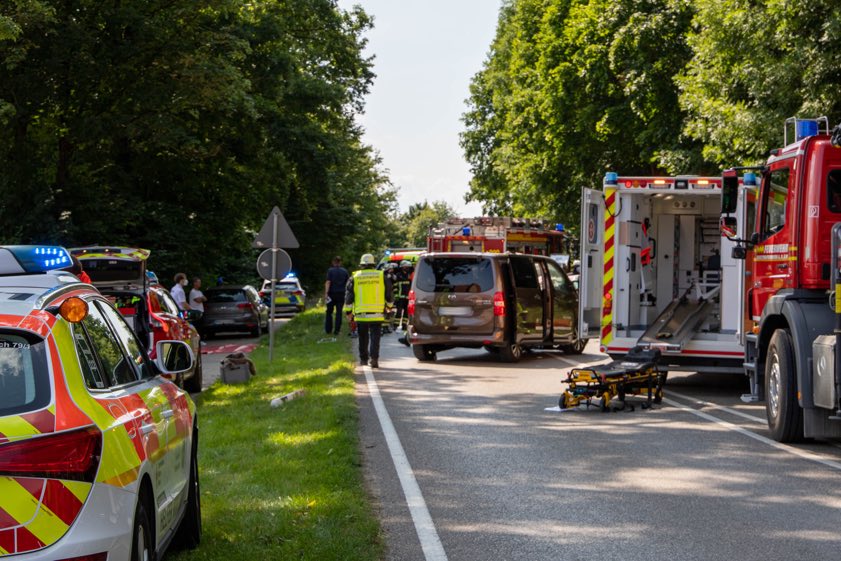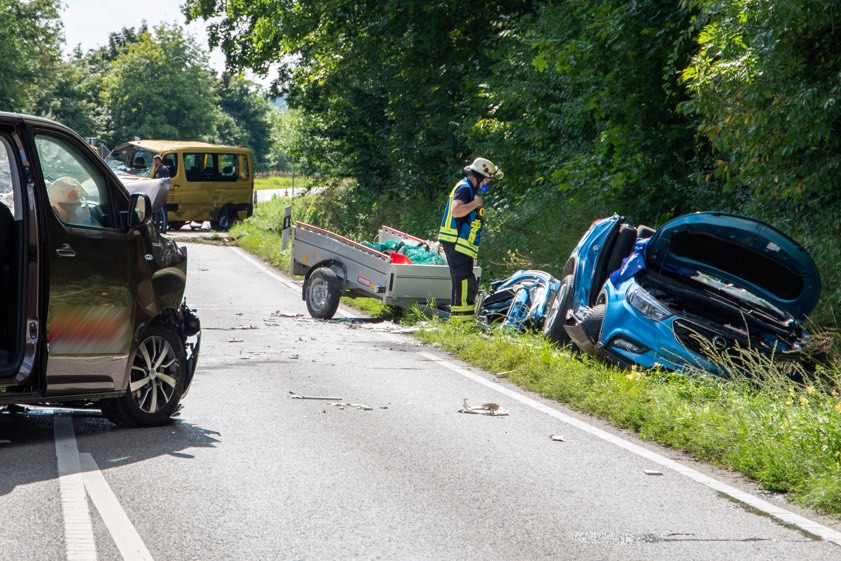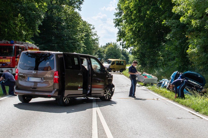 Nach dem Zusammenstoß mit dem Mercedes-Kleinbus sei der Opel des Unfall-Verursachers noch mit einem nachfolgenden Toyota-Kleinbus kollidiert, in dem sich eine Familie aus dem Raum Augsburg befunden habe. Laut Mitteilung der Polizei trugen sämtliche dieser sechs Familien-Mitglieder im Alter zwischen zwölf und 88 Jahren jeweils leichte Verletzungen davon. Nach Angaben der Polizei wurden diese sechs Verletzten vom Rettungsdienst versorgt und konnten schließlich dank der Hilfe von Verwandten ihre Fahrt fortsetzen. Der Opel des 65-Jährigen war nach diesem zweiten Crash in den Straßengraben geschleudert worden.