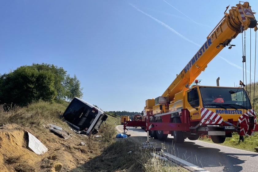 Der Omnibus war laut Mitteilung des niederbayerischen Polizeipräsidiums mit einer tschechischen Reise-Gruppe besetzt, die von Italien nach Prag unterwegs war. Neben den 35 Fahrgästen befanden sich laut Polizei zwei Busfahrer, ebenfalls tschechische Staatsangehörige, in dem Fahrzeug. Die beiden Busfahrer seien bei dem Unglück nicht verletzt worden, hieß es am frühen Nachmittag. Von der Polizei seien das tschechische Generalkonsulat in München verständigt sowie ein örtlicher Tschechisch-Dolmetscher zur Unfall-Aufnahme hinzugezogen worden.