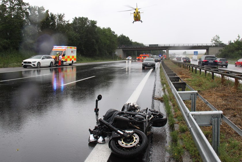 Durch den Kontakt zwischen dem Auto-Spiegel beziehungsweise der linken Pkw-Seite und dem Motorrad sei der 55-Jährige nach links geschleudert worden und gegen die Leitplanke geraten. Er habe schwere, aber nicht lebensbedrohliche Verletzungen davongetragen. Vom Rettungsdienst sei er in ein Krankenhaus nach Ingolstadt gefahren worden. Die Unfallstelle habe wegen der Landung eines Rettungs-Hubschraubers und wegen der polizeilichen Unfall-Aufnahme für etwa 30 Minuten gesperrt werden müssen. Auch die Feuerwehr aus Lenting war vor Ort.