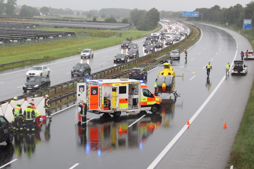 (ty) Bei einem Verkehrsunfall auf der A9 in Richtung München ist am heutigen Nachmittag gegen 15.10 Uhr zwischen den Anschlussstellen Lenting und Ingolstadt-Nord ein 55 Jahre alter Motorrad-Fahrer schwer verletzt worden. Er schlängelte sich im zäh fließenden Verkehr zwischen den Spuren hindurch und kollidierte dabei mit einem Pkw. Der Verunglückte, der aus dem Landkreis Rosenheim stammt, wurde in eine Klinik gebracht. Die Autobahn war wegen der Landung eines Rettungs-Hubschraubers zeitweise gesperrt.