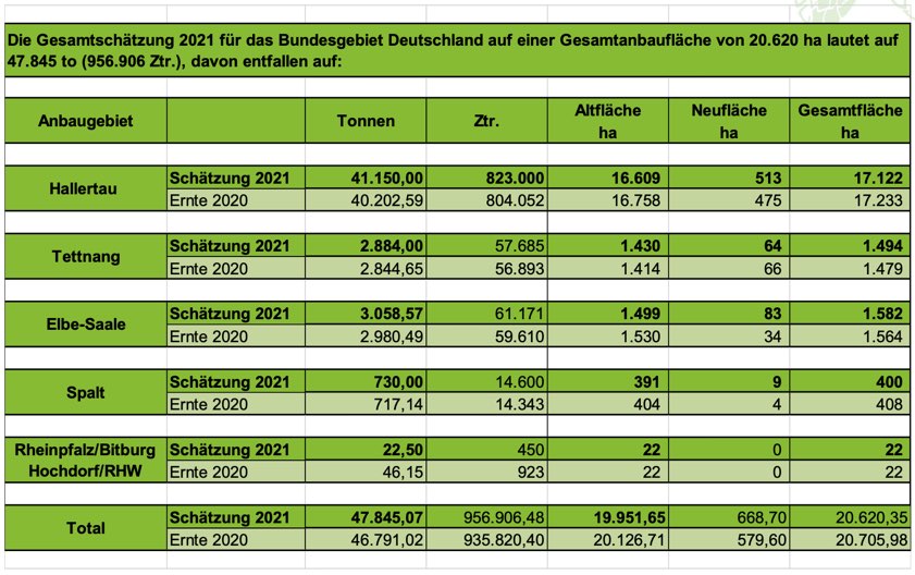 "Nach einiger Zeit fast ohne Markt-Aktivitäten zwischen Hopfen-Pflanzern und Handelshäusern gibt es seit Mai 2021 wieder Vertrags-Angebote von Seiten der Handelshäuser an die Hopfen-Pflanzer", ließ der Verband heute wissen. "Hierbei werden vor allem Verträge für die Sorten Herkules, Polaris, Perle, Hallertauer Tradition und Hersbrucker angeboten." Die Laufzeit der Verträge reiche bis zum Jahr 2031, wobei auch kürzere Vertragslaufzeiten vereinbart werden könnten. Die Vorvertrags-Quote der nächsten fünf Jahre sei bereits sehr hoch, "was bedeutet, dass ein sehr hoher Anteil der Deutschen Hopfen-Anbaufläche bereits unter Vertrag steht und der Verkauf der Hopfen für die deutschen Pflanzer bereits gesichert ist".