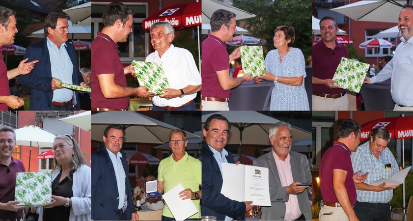 (ty) Aufgeschoben sollte nicht aufgehoben sein: Der Pfaffenhofener Bürgermeister Thomas Herker (SPD) hat im Rahmen einer kleinen Feier die zum Mai vergangenen Jahres ausgeschiedenen Stadtrats-Mitglieder nun auch offiziell verabschiedet (Fotos oben). Corona-bedingt hatte im April 2020 nur der Ferien-Ausschuss zusammentreten können, weshalb die Verabschiedung damals auf einen angemesseneren Termin vertagt worden war. Ein gemeinsames Abendessen bot kürzlich im Innenhof der Wohnanlage "St. Josef" am Hofberg den Rahmen für die nachgeholte Ehrung. Herker würdigte in persönlichen Worten die ehrenamtliche Tätigkeit der sieben ehemaligen Rats-Mitglieder.