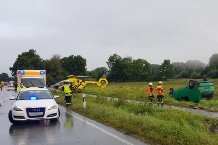 40-Jähriger kam mit Pkw von der Straße ab und überschlug sich. Das Wrack blieb auf dem Dach liegen, der Mann hatte Glück im Unglück.