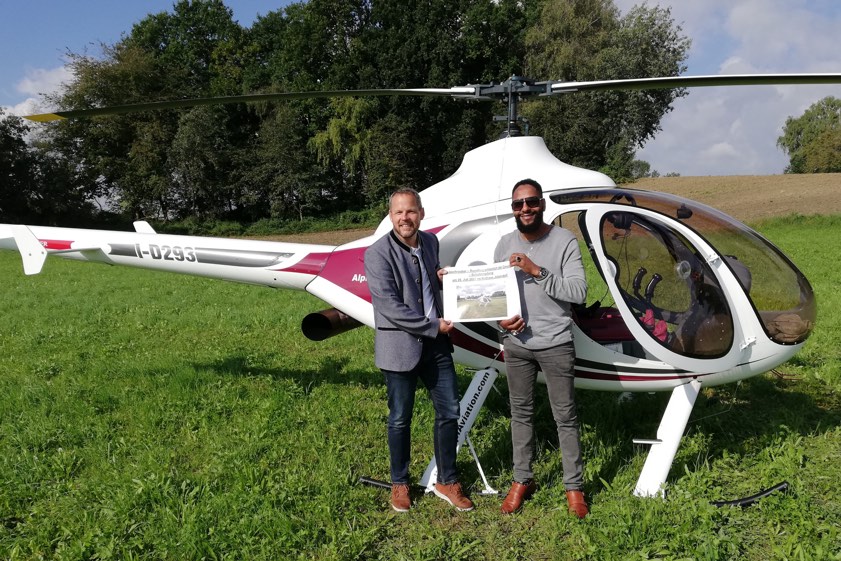 Wie die Gemeinde jetzt mitgeteilt hat, ging der von der Kommune spendierte Hubschrauber-Rundflug an Freddy Ozoria-Sanchez aus dem Jetzendorfer Ortsteil Hirschenhausen (Foto oben, rechts). Bürgermeister Betzin überreichte dem Gewinner mittlerweile den entsprechenden Gutschein – und zwar vor dem Helikopter, mit dem demnächst auch der Rundflug über das obere Ilmtal stattfinden soll.