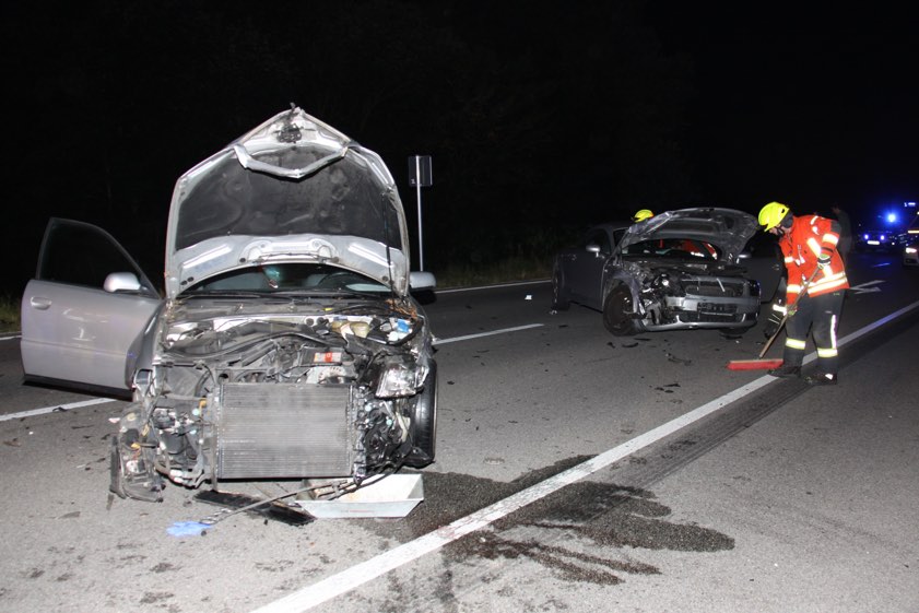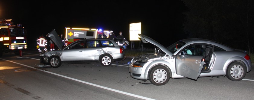 (ty) Auf der B16 bei Ernsgaden hat am gestrigen Abend ein führerscheinloser und total betrunkener Autofahrer einen heftigen Crash verursacht. Der 24-jährige Ingolstädter hatte laut Polizei mehr als zwei Promille intus, als er mit einem Pkw auf die Gegenspur geriet und dort frontal mit einem entgegenkommenden Wagen kollidierte. Der Unfall-Verursacher sowie dessen Beifahrer (36) wurden ebenso verletzt, wie der Fahrer des anderen Autos und die beiden Kinder, die dieser mit an Bord hatte. Auf den 24-Jährigen, der kurz zuvor in Ernsgaden eine Unfallflucht begangen haben soll, kommt nun ein umfangreiches Strafverfahren zu. Strafrechtlichen Ärger kriegt auch der 36-jährige Beifahrer – er ist der Halter des Fahrzeugs.
