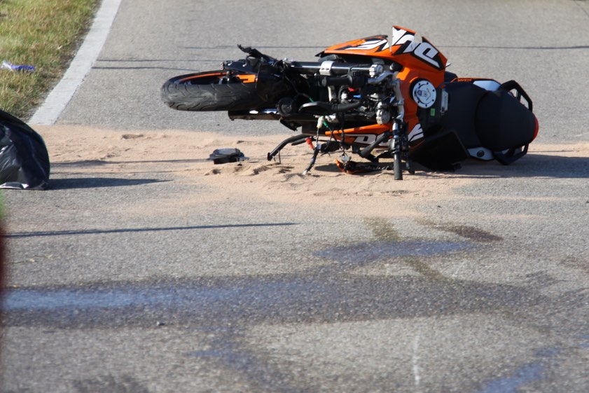 Der Moped-Fahrer hatte gestern bei einem Überhol-Manöver in einer Rechts-Kurve offenbar den entgegenkommenden Traktor übersehen.