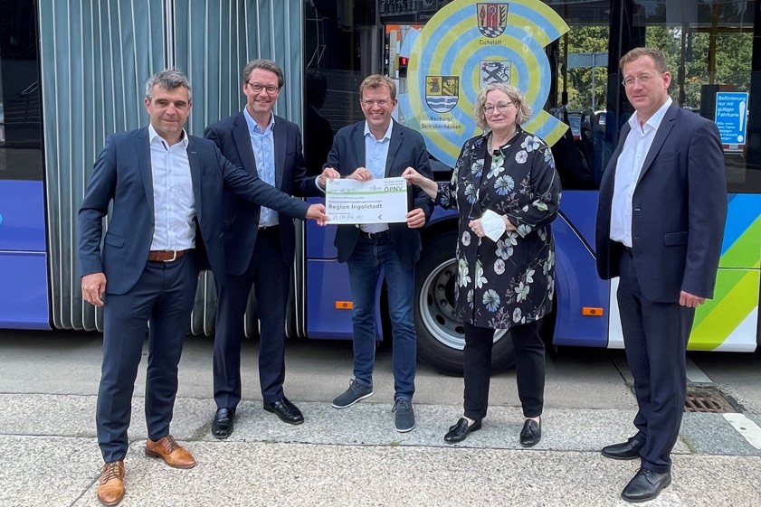 (ty) Das Bundes-Verkehrs-Ministerium für Verkehr und digitale Infrastruktur (BMVI) hat den "Zweckverband Verkehrs-Verbund Großraum Ingolstadt" (VGI) als Modell-Region im Rahmen eines bundesweiten Förder-Programms ausgewählt. Das wurde heute aus dem Rathaus von Ingolstadt mitgeteilt. Bundes-Verkehrs-Minister Andreas Scheuer überreichte heute einen Vorab-Förder-Bescheid in Höhe von 29 Millionen Euro an den Eichstätter Landrat Alexander Anetsberger, der in Vertretung für den VGI-Vorsitzenden, den Ingolstädter Oberbürgermeister Christian Scharpf, nach Nürnberg gekommen war.