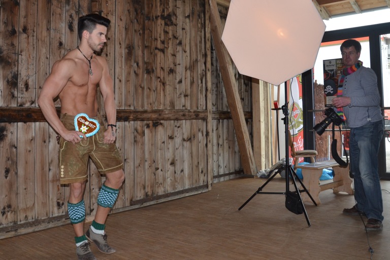 Praktisch und künstlerisch umgesetzt wurde das alles vom Fotografen Frank Jagow, mit dem Edelzeit-Chefin Menzel im vergangenen Jahr bereits bei einem ersten Shooting auf einem Gutshof im Landkreis Pfaffenhofen zusammengearbeitet hat. „Faszination ist der Auslöser“, lautet Frank Jagows Motto – und man glaubt es ihm sofort, wenn er hier noch ein bisschen korrigiert, da noch etwas anders beleuchtet und die Blitze durch das Set zucken lässt. Unsere Leserinnen werden jetzt vermutlich ein bisschen enttäuscht sein, dass die Foto-Session so klammheimlich über die Bühne ging – denn Florian Bornschier, der keinesfalls zu Unrecht auch Unterwäsche-Model ist, zeigte am Ende viel nackte Haut und jede Menge Muskeln.