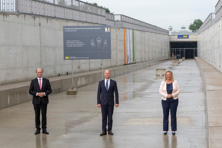 "Der Bahn-Tunnel ist eine echte Zukunfts-Investition, mit der die Flughafen-München-GmbH die intermodale Mobilität am Drehkreuz München fördert. Für die durchgängige Schienen-Verbindung von Freising über den Flughafen nach Erding ist die Verlängerung des Bahn-Tunnels unerlässlich. Dank der zügigen Umsetzung durch die FMG ist dieses wichtige Teilstück für den Erdinger Ringschluss jetzt geschaffen", so Füracker.