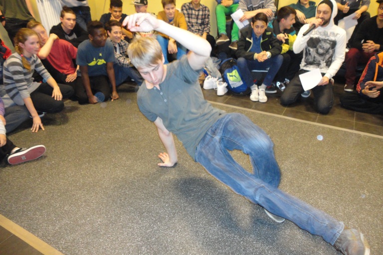 Nach anfänglichen organisatorischen Schwierigkeiten, bei denen die Jury das Zepter in die Hand nahm und dankenswerterweise „Eddi“ als Moderator einsprang, startete der Wettkampf um 19 Uhr. Der angekündigte DJ JPie trat nicht auf. In den folgenden Battles standen sich jeweils zwei Gruppen gegenüber. Beide Tänzer aus jeweils zwei Crews konnten dabei je einmal ihr Können zeigen. Die acht Gruppen, die in dieser ersten Runde die meisten Punkte auf sich vereinten, kamen weiter und mussten sich in der Folge im K.o.-Verfahren gegen den jeweiligen direkten Gegner durchsetzen. Da sich jedoch in der ersten Runde ein Tänzer aus der „Panda Crew 2“ verletzte, konnten die punktschwächsten Teams nochmal je einen Tänzer in den Ring schicken. In diesem spannenden Vierer-Battle setzen sich am Ende die „Peacefakers“ durch.