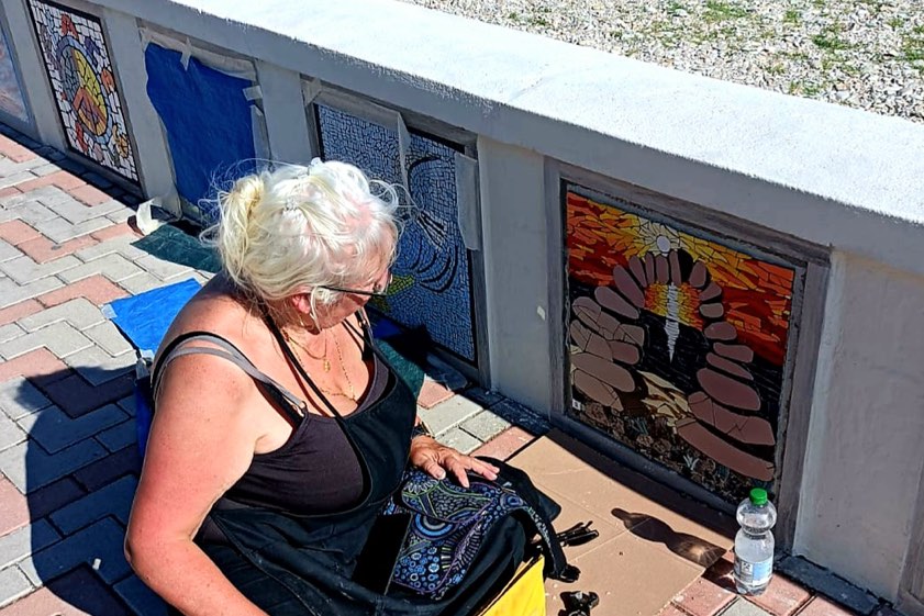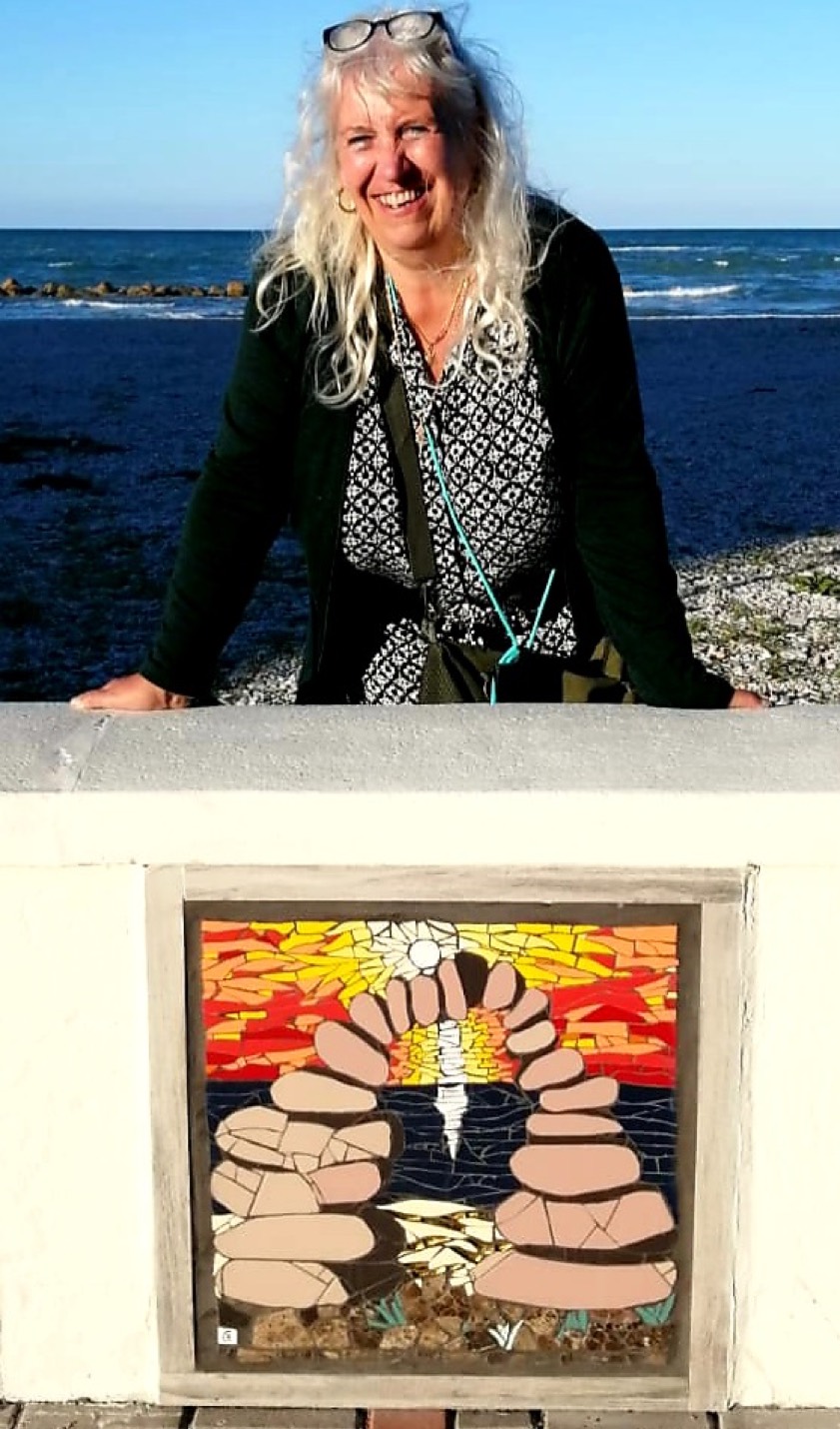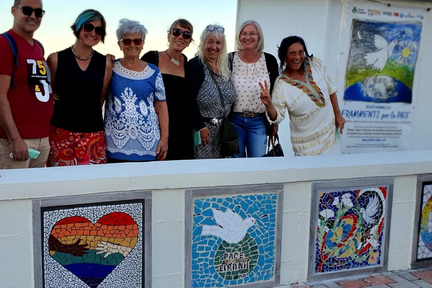 "Der Bürgermeister hat übrigens für sein Programmheft, in dem er für eine Zukunft des Ortes wirbt, mein Mosaik aus dem letzten Jahr für die Tourismus-Seite verwendet", sagt sie. Wie berichtet, war Jung bereits im vergangenen Jahr in dem malerischen Ort an der Adria tätig. Mittlerweile ist sie auch von ihrem diesjährigen Italien-Engagement zurückgekehrt. Die Einweihung des heuer entstandenen Friedens-Mosaiks erfolgte laut Jung am Strand mit rund 250 Besuchern. "Und zwar mit dem ältesten Mosaik-Künstler Randolf. Wir haben uns als Friedensgruß die Hände geschüttelt."