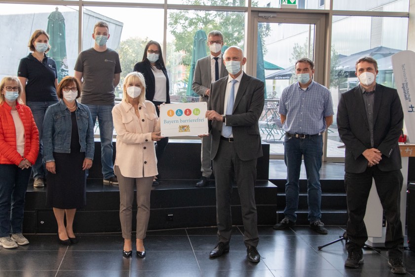 Die Staatsregierung würdigt mit dem Signet Beiträge auf dem Weg zur Barrierefreiheit. Barrieren sollen abgebaut, mehr Teilhabe für eingeschränkte Menschen am gesellschaftlichen Leben ermöglicht werden. Das Signet ist ein Zeichen der Anerkennung. Es ist aber auch Ansporn, noch mehr für Barrierefreiheit zu tun. Die THI hat nach eigenen Angaben bereits einiges angestoßen, um hier das Arbeiten und Studieren zu erleichtern. So gebe es zum Beispiel barrierefreie WCs auf dem Campus, alle Hörsaal-Gebäude seien barrierefrei zugänglich, ebenso die Mensa, die Cafeteria und die Bibliothek. Plätze für Rollstuhlfahrer gebe es in den Hörsälen mit aufsteigendem Gestühl. Behinderten-Parkplätze befänden sich in der Tiefgarage und auf dem Parkplatz-Nord. Einige Hörsäle seien mit induktiver Hörschleife ausgestattet und die Homepage werde gerade barrierefrei umgebaut.