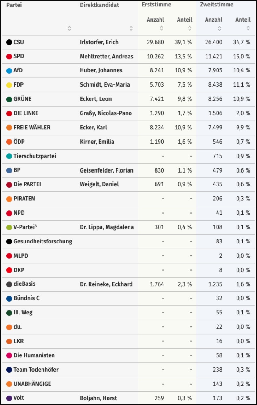 Das Zweitstimmen-Ergebnis im Landkreis Pfaffenhofen:
