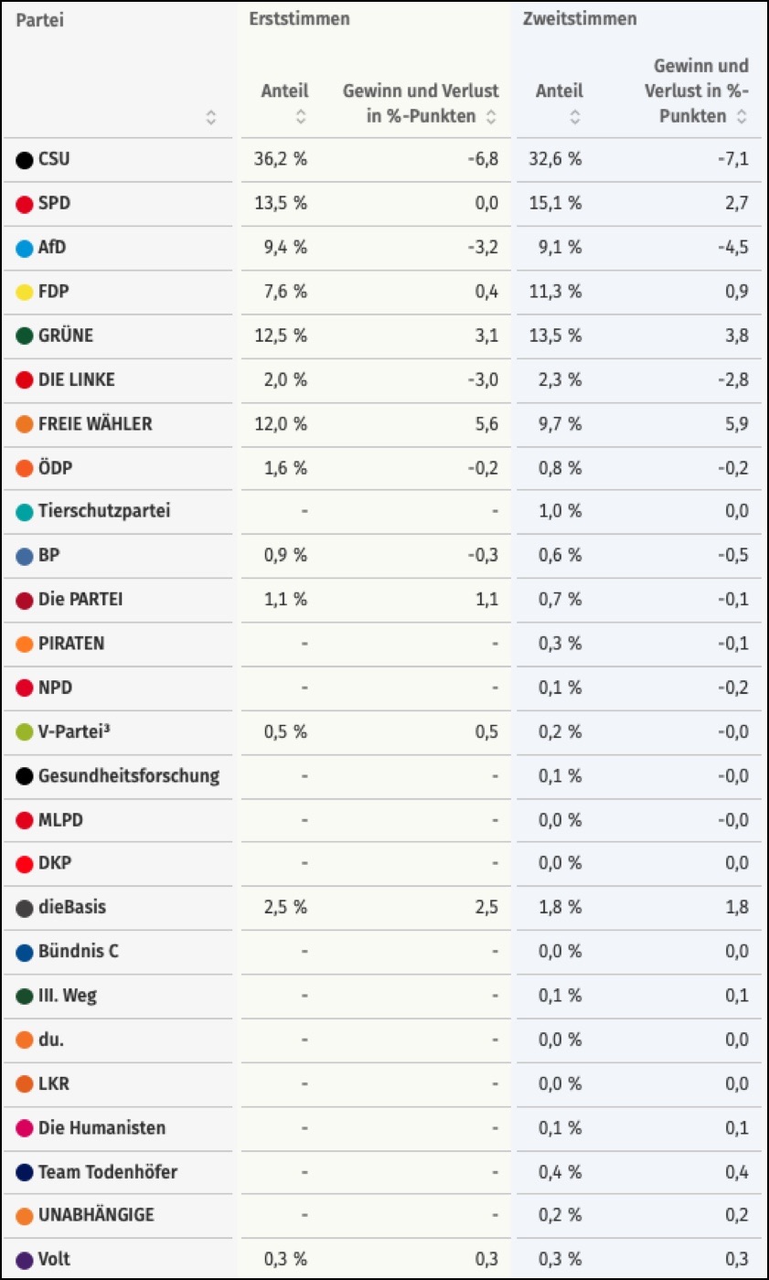 Zwar musste er im Vergleich zu seinem Ergebnis bei der Bundestagswahl von 2017 ein klares Minus von 6,8 Prozentpunkten hinnehmen und kam heute auf 36,2 Prozent. Doch damit schnitt er deutlich besser ab, als seine Partei: Bei den Zweistimmen für die Christsozialen steht nämlich im hiesigen Wahlkreis ein Minus um 7,1 Prozentpunkte auf nunmehr 32,6 Prozent zu Buche.