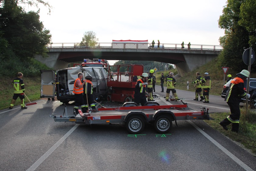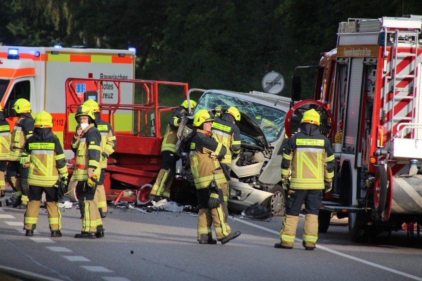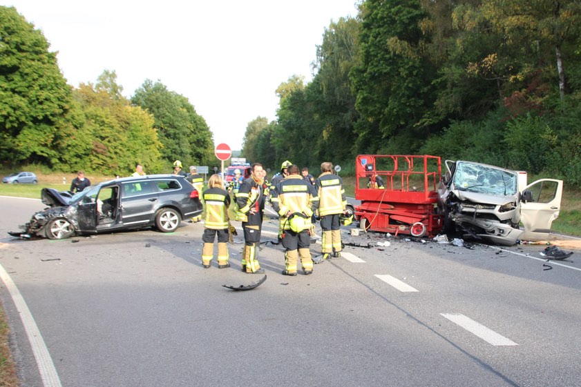 (ty) Ein 36 Jahre alter Pkw-Fahrer, der offenbar am Steuer eingeschlafen war, hat am gestrigen Nachmittag auf der B16 im Gemeinde-Bereich von Neustadt an der Donau einen schweren Verkehrsunfall verursacht. Sein Kombi krachte zunächst ins Heck eines Tanklastwagens und geriet nach diesem Zusammenstoß auf die Gegenspur, wo er frontal mit einem entgegenkommenden Kleintransporter-Gespann kollidierte. Der Crash-Verursacher erlitt mittelschwere Verletzungen, der Lieferwagen-Fahrer (51) wurde ebenfalls verletzt. Die Bundesstraße war stundenlang komplett gesperrt.