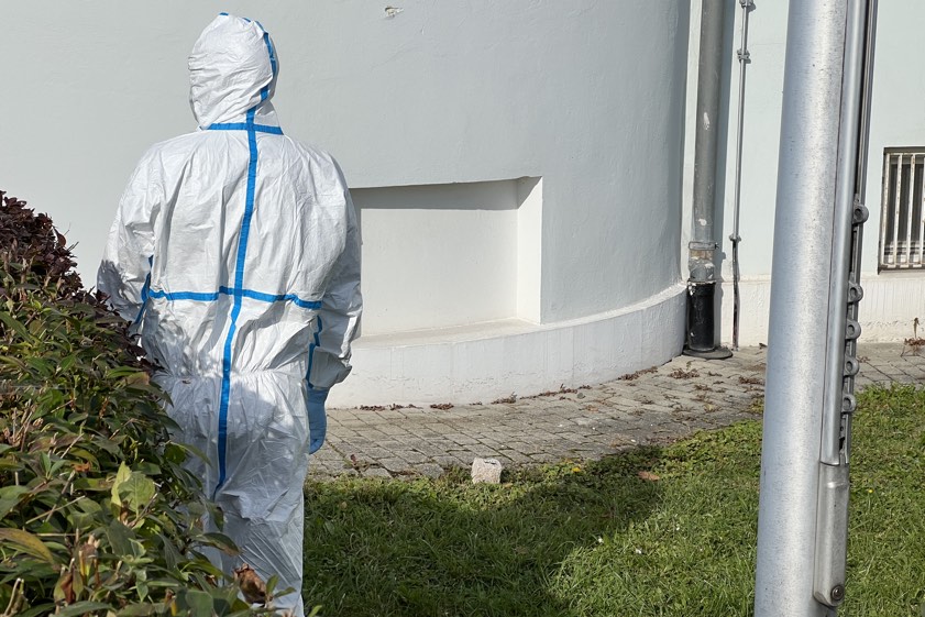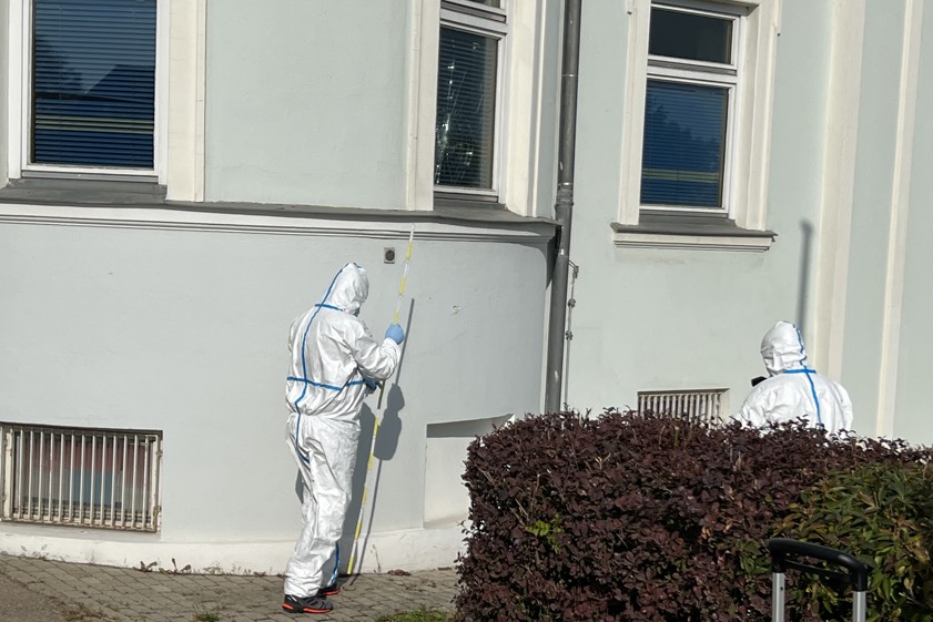 Die Ermittler von der Kriminalpolizei-Inspektion aus Landshut "gehen derzeit davon aus, dass die Beschädigungen von Steinwürfen herrühren dürften", meldete das niederbayerische Polizeipräsidium weiter. "Die Spuren vor Ort werden derzeit untersucht", hieß es gegen 10 Uhr. Kurz nach den genannten Einschlägen hatten die Wachbeamten – so heißt es weiter – eine männliche Person bemerkt, die sich in unbekannte Richtung vom Tatort entfernte. Bei der groß angelegten Fahndung war auch ein Polizei-Hubschrauber im Einsatz.