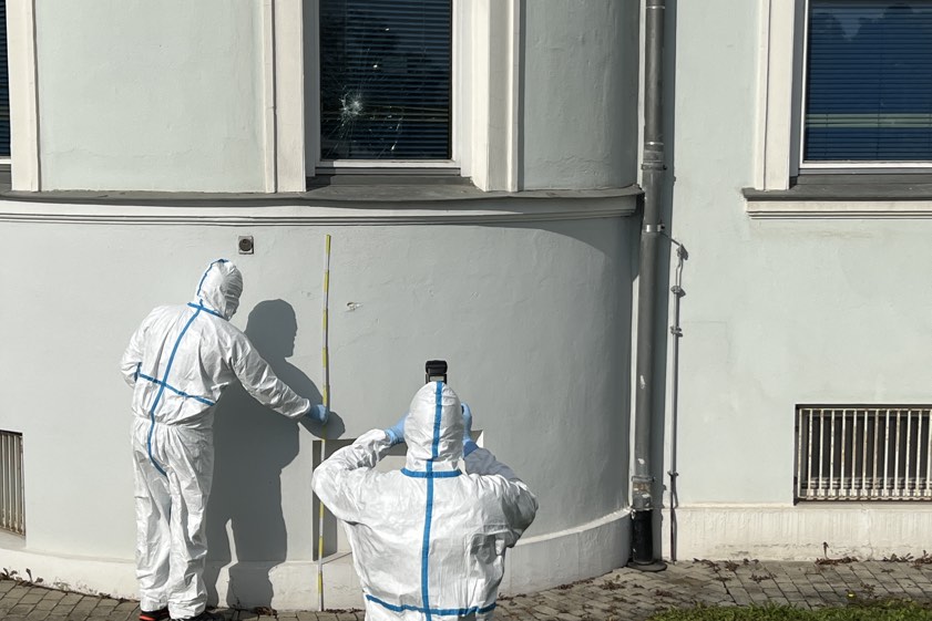"Gegen 4.45 Uhr nahmen Beamte auf der Wache der Polizeiinspektion Mainburg mehrere Einschläge an der Scheibe und Hausfassade des Polizei-Gebäudes wahr", heißt es in einem ersten offiziellen Bericht aus dem niederbayerischen Polizeipräsidium zu den Geschehnissen. "Aufgrund des anfänglichen Verdachts, es könne sich gegebenenfalls um Geschosse aus einer Schusswaffe handeln, wurden umfangreiche Fahndungs-Maßnahmen nach dem Verursacher eingeleitet." Im Rahmen von ersten Ermittlungen am Tatort seien aber auch Pflastersteine in der Nähe der Einschläge festgestellt worden.