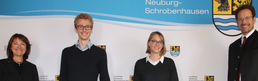 Vize-Landrätin Rita Schmidt (von links), Sebastian Maier, Leoni Muhr und Landrat Peter von der Grün.