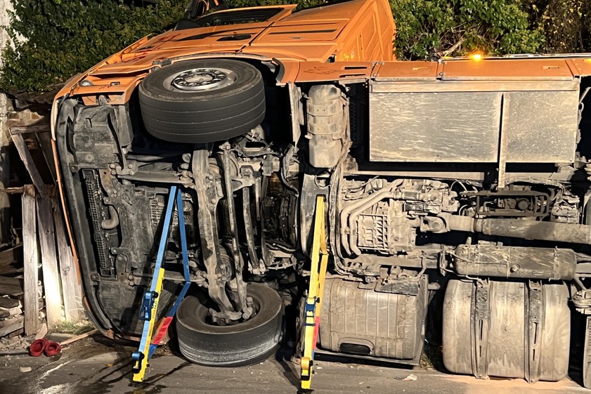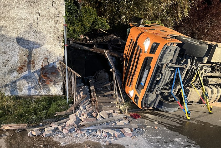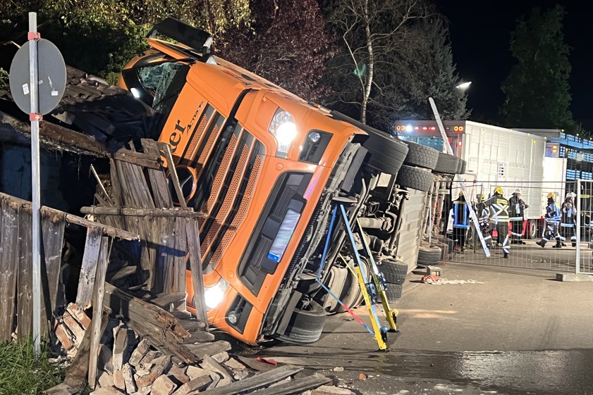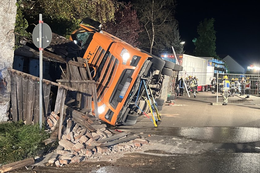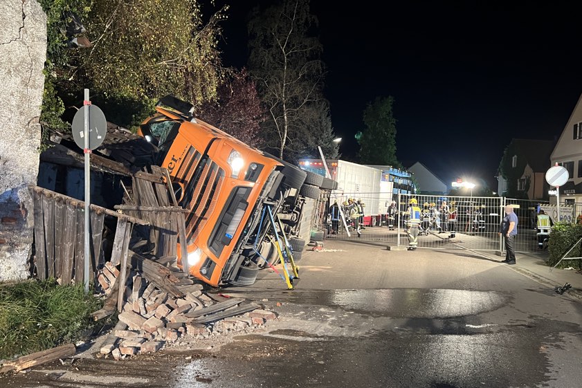Ursache des Unglücks und Höhe des Schadens sind bislang unklar. Der Lkw-Fahrer kam mit leichten Verletzungen davon.