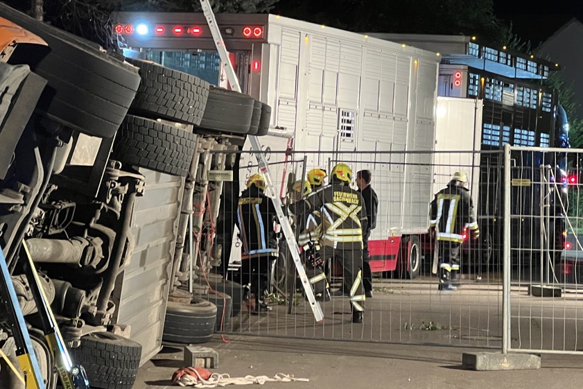 Der 58 Jahre alte Lastwagen-Lenker habe sich leichte Verletzung am linken Unterarm zugezogen. Er hatte sich laut Polizei aus eigener Kraft aus dem Unglücks-Laster befreien können. Eine Scheune, die sich neben der Fahrbahn befindet, sei durch den Verkehrsunfall in Mitleidenschaft gezogen worden. Das Lkw-Gespann hatte nach Erkenntnissen der Polizei rund 170 Schweine an Bord. Nach den bisher vorliegenden Informationen sind mindestens zehn Tiere ums Leben gekommen.