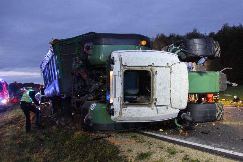 Zwei Kastenwagen krachten heute bei missglücktem Überhol-Manöver frontal zusammen. Traktor kippt bei Ausweich-Manöver um.