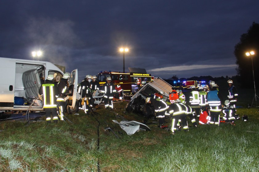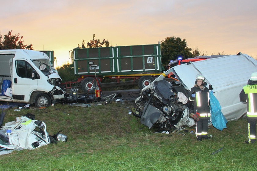 (ty) Auf der Staatsstraße 2229 hat sich am heutigen Morgen zwischen Stammham und Hepberg ein schrecklicher Verkehrsunfall ereignet, bei dem ein 55 Jahre alter Kastenwagen-Fahrer ums Leben gekommen ist. Der 22 Jahre alte Fahrer eines weiteren Kastenwagens hat schwere Verletzungen davongetragen. Die beiden Autos waren frontal zusammengestoßen, als der 55-Jährige ein landwirtschaftliches Gespann überholen wollte. Der Traktor-Lenker (35), dessen Fahrzeug beim Ausweichen umkippte, erlitt leichte Verletzungen. Die Straße ist im Bereich der Unglücksstelle vermutlich noch bis etwa 15 Uhr gesperrt, teilte die Polizei mit.
