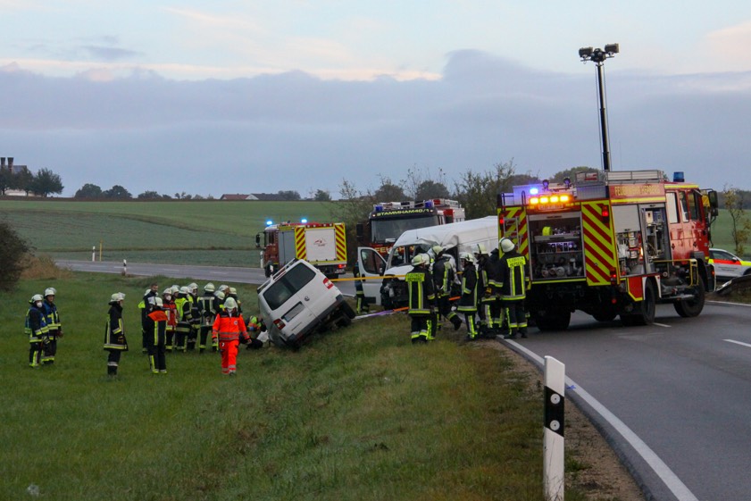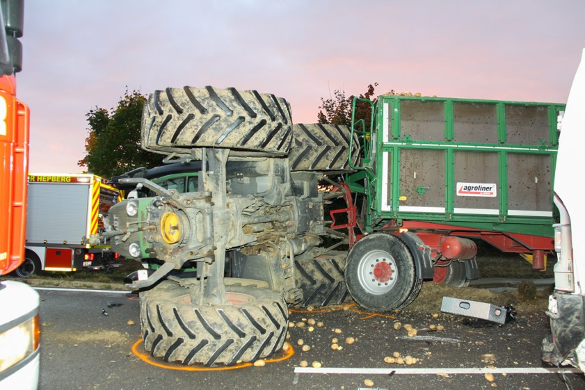 Der Unfall geschah gegen 6.40 Uhr. Zum Unglücks-Hergang teilte die Polizeiinspektion aus Beilngries am Nachmittag folgendes mit: Ein 35-Jähriger aus dem Landkreis Pfaffenhofen war mit seinem Traktor und zwei Anhängern auf der genannten Staatsstraße – von Hepberg her kommend – in Richtung Stammham unterwegs. In einer langgezogenen Linkskurve wurde er nach derzeitigem Ermittlungsstand von einem Kastenwagen überholt, an dessen Steuer der 55-Jährige aus dem Landkreis Eichstätt saß. Zeitgleich kam ihm allerdings ein anderer Kastenwagen entgegen, der von einem 22-Jährigen aus Niedersachsen gelenkt wurde.