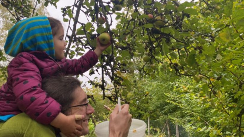 Kinder helfen bei Apfel-Ernte für guten Zweck
