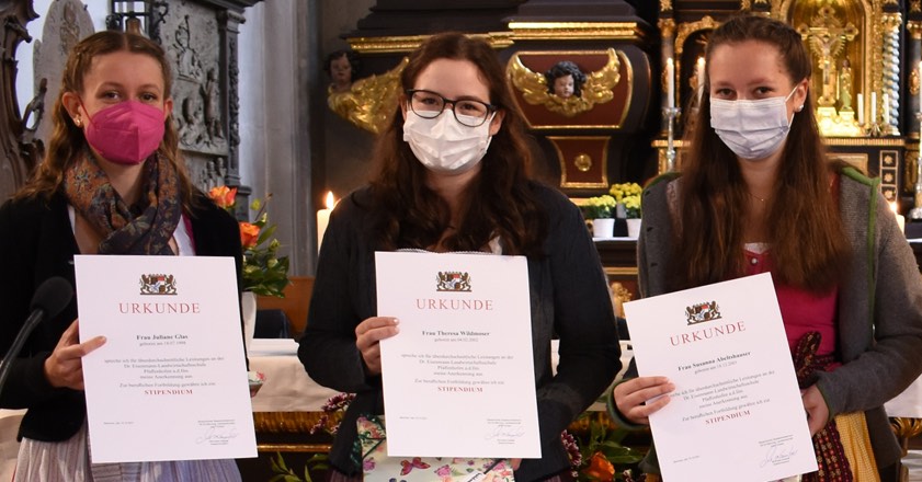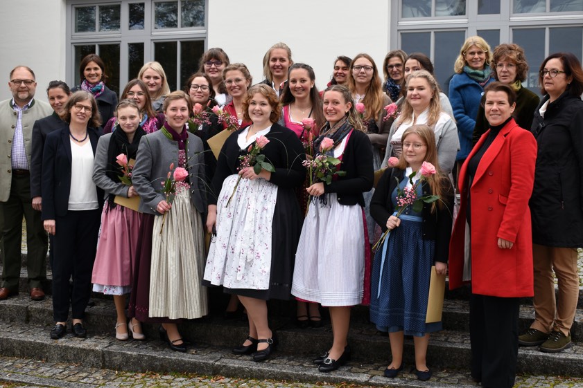 Die besten drei Absolventinnen des mittlerweile 68. Fortbildungs-Jahrgangs (Foto unten) waren Juliane Glas aus dem Landkreis Regensburg mit der Traumnote 1,00 sowie Susanna Abeltshauser aus dem Landkreis Bad Tölz-Wolfratshausen mit der Note 1,41 und Theresa Wildmoser aus dem Landkreis Freising mit ebenfalls der Note 1,41. Alle drei erhielten für ihre hervorragenden Leistungen jeweils ein Buch-Geschenk des Landkreises Pfaffenhofen aus der Hand der stellvertretenden Landrätin Kerstin Schnapp (Grüne) sowie ein Stipendium des bayerischen Landwirtschafts-Ministeriums.